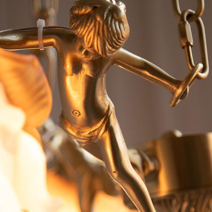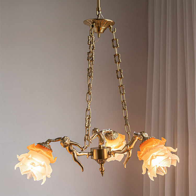 Traditional Vintage Angel Flower Copper Glass 1/3/6 Light Chandelier For Bedroom
