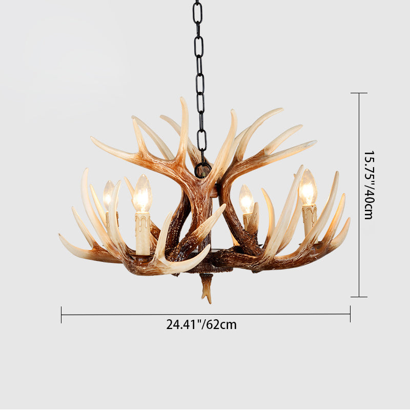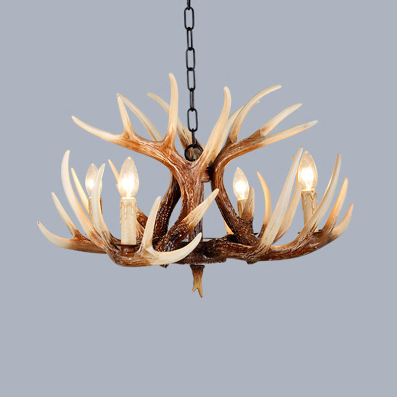 Traditional Vintage Antler Branch Sconce Resin PVC 4/6 Light Chandelier For Living Room
