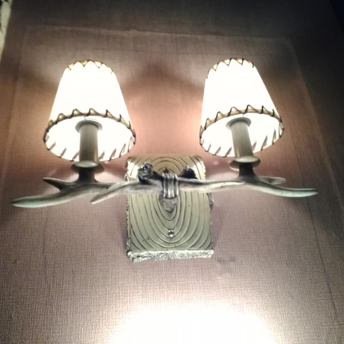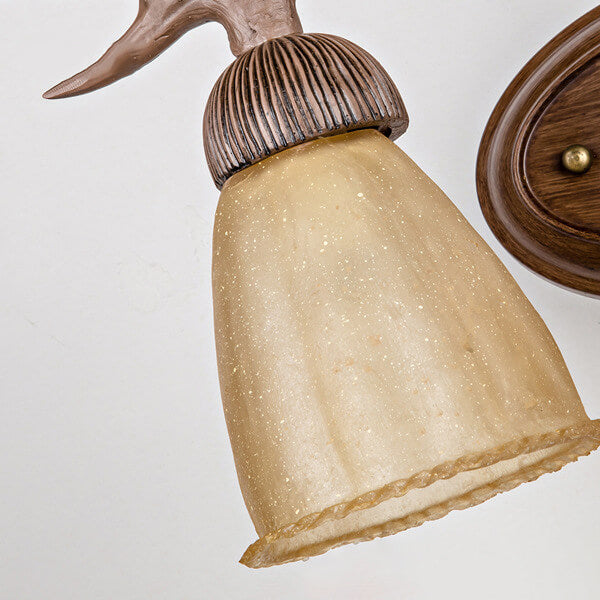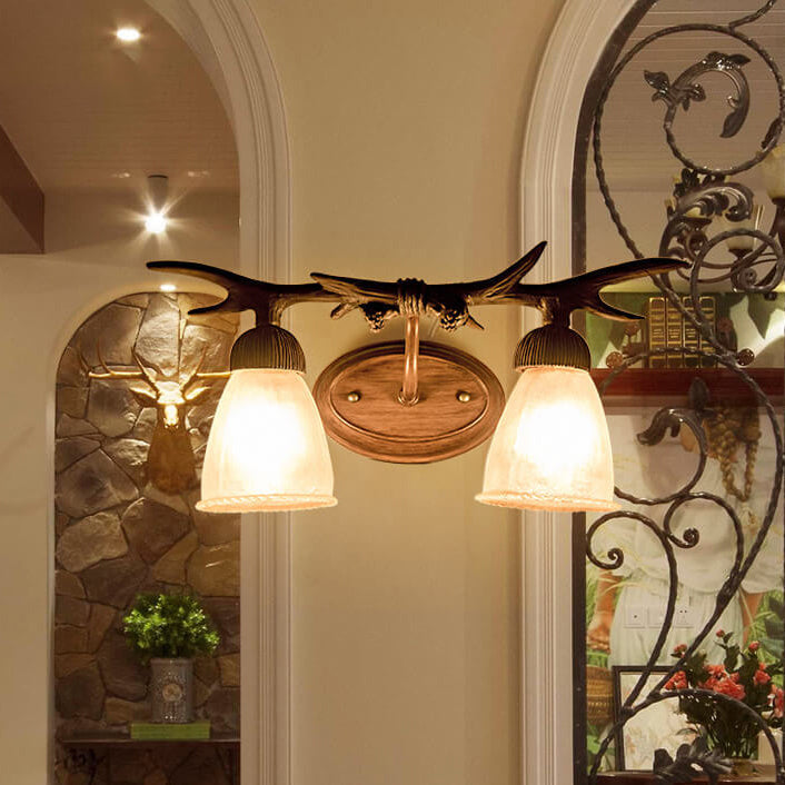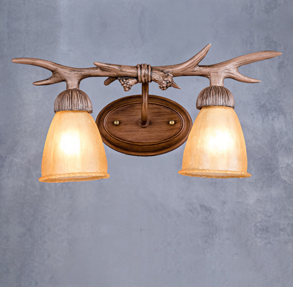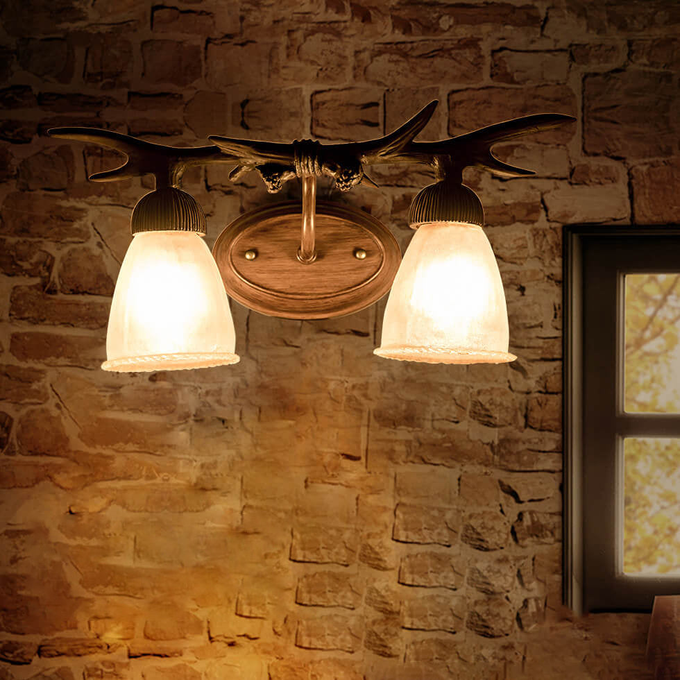 Traditional Vintage Antler Iron Resin Faux Parchment Shade 2-Light Wall Sconce Lamp For Living Room