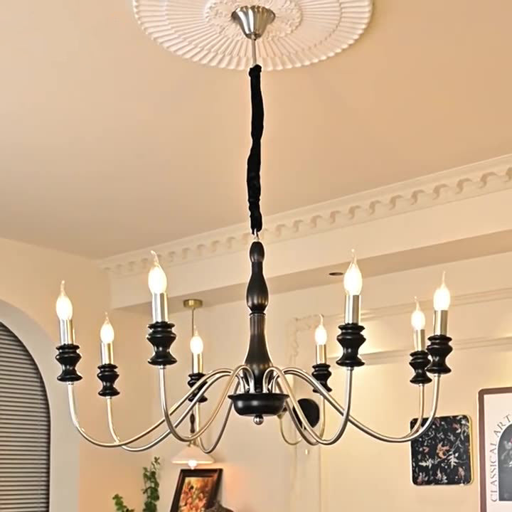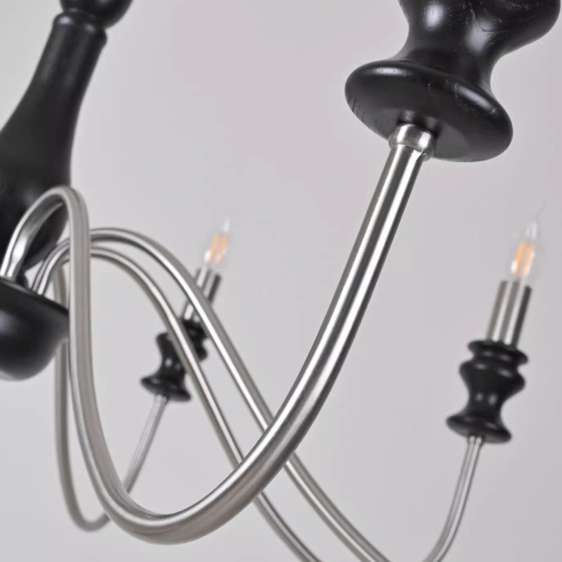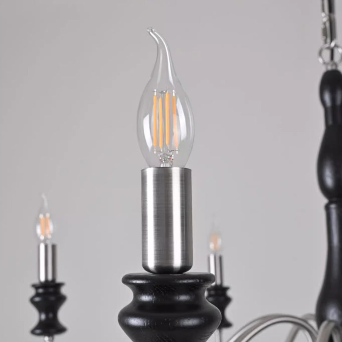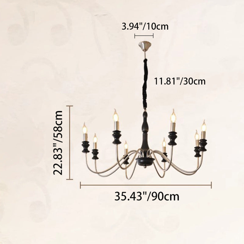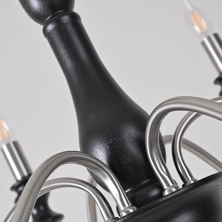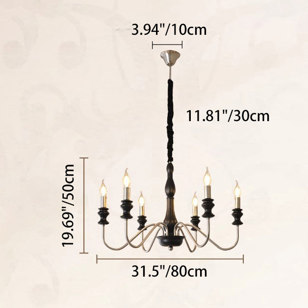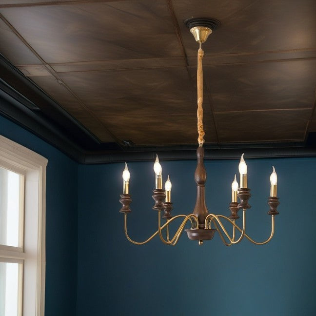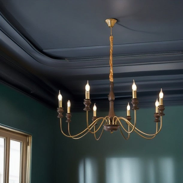 Traditional Vintage Candle Shape Ash Wood Alloy 6/8 Light Chandelier For Living Room