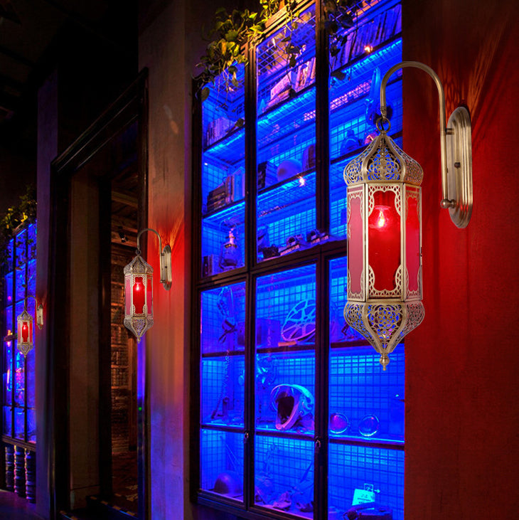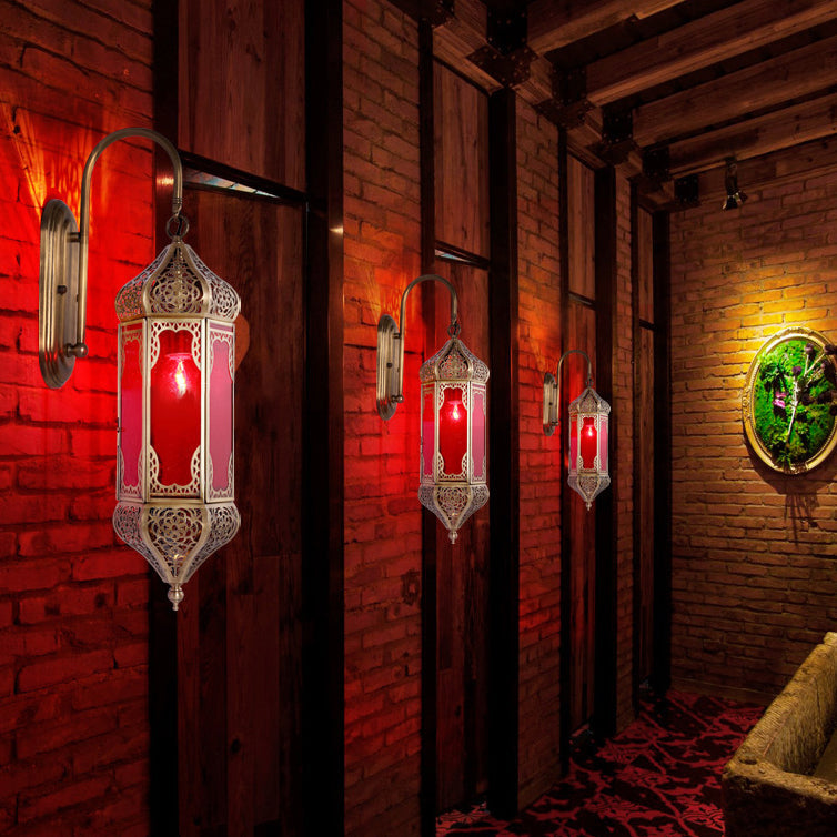 Traditional Vintage Carved Brass Column Glass 1-Light Wall Sconce Lamp For Dining Room