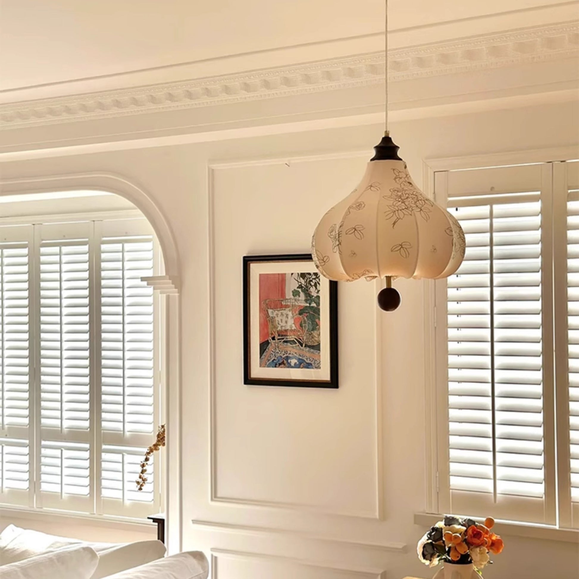 Traditional Vintage Chestnut Shaped Walnut Fabric Iron 1-Light Pendant Light For Bedroom