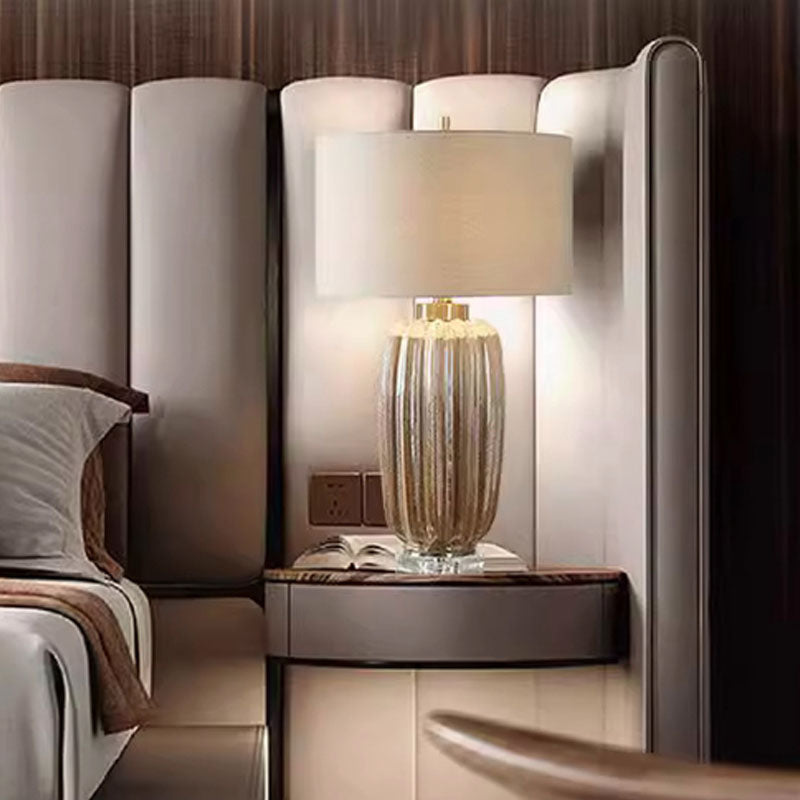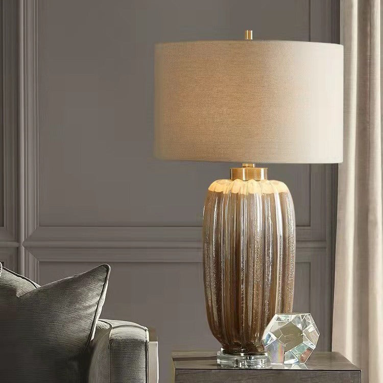 Traditional Vintage Column Ceramic Fabric 1-Light Table Lamp For Living Room