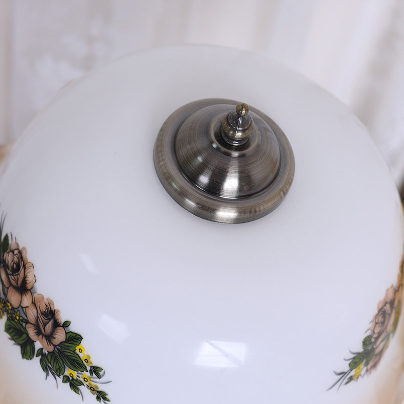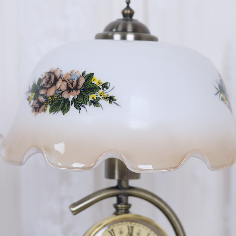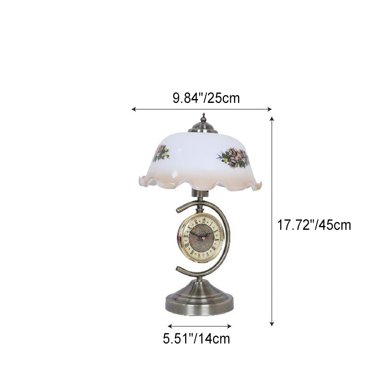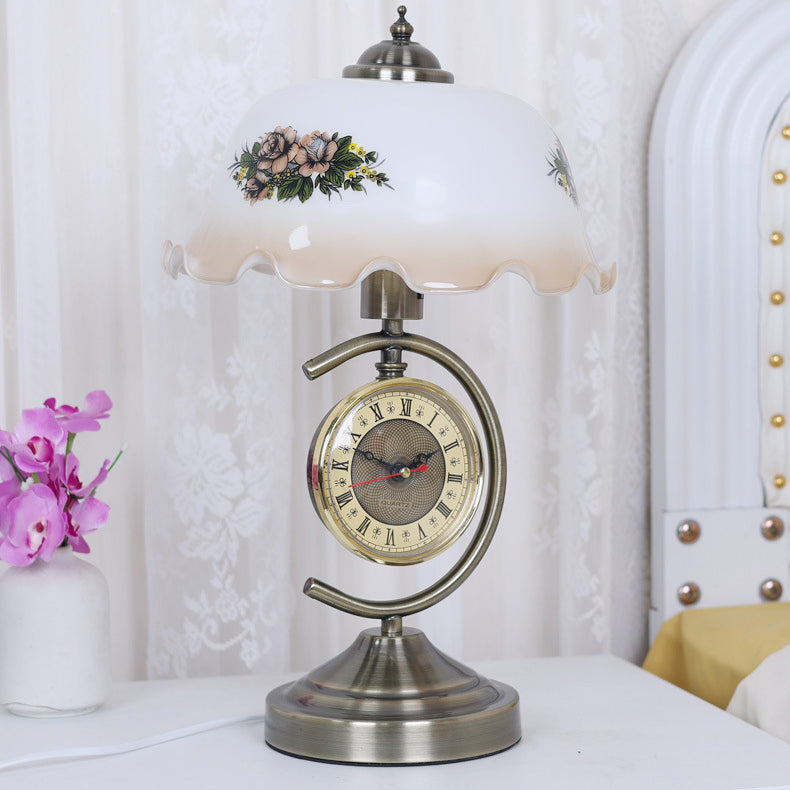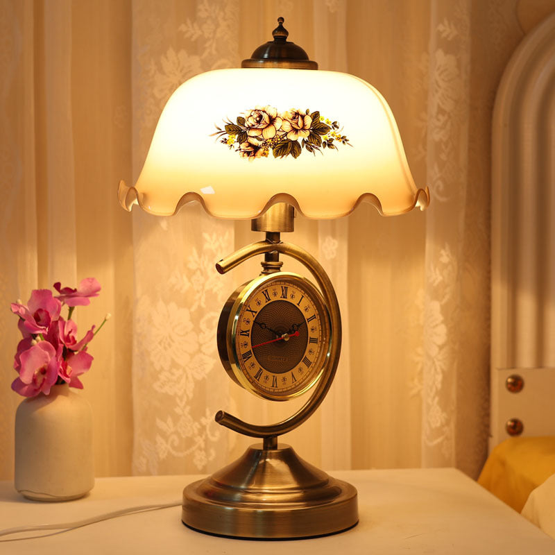 Traditional Vintage Dome Petal Clock Hardware Glass 1-Light Table Lamp For Bedroom