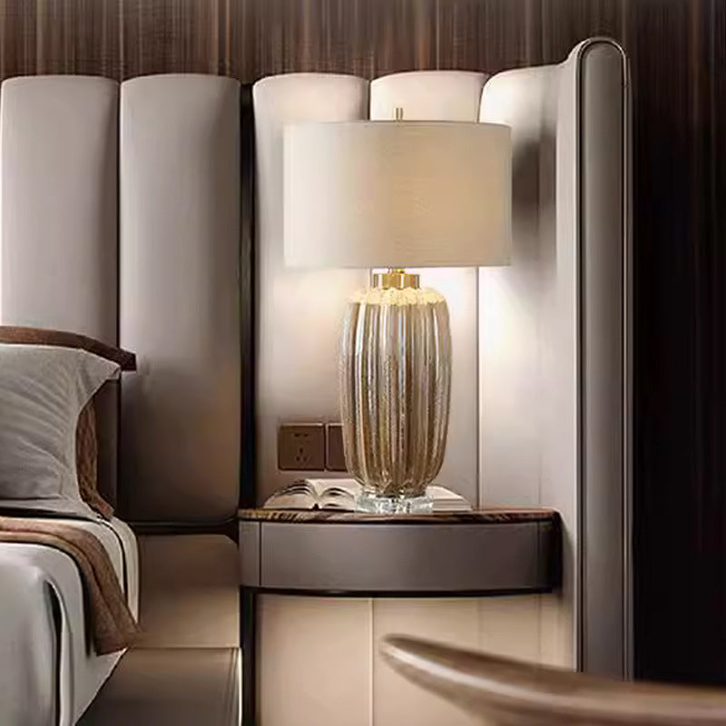 Traditional Vintage Fabric Cylinder Shade Ceramic Vase Base 1-Light Table Lamp For Study
