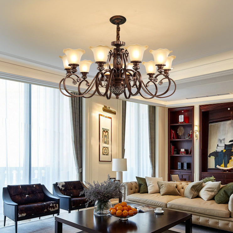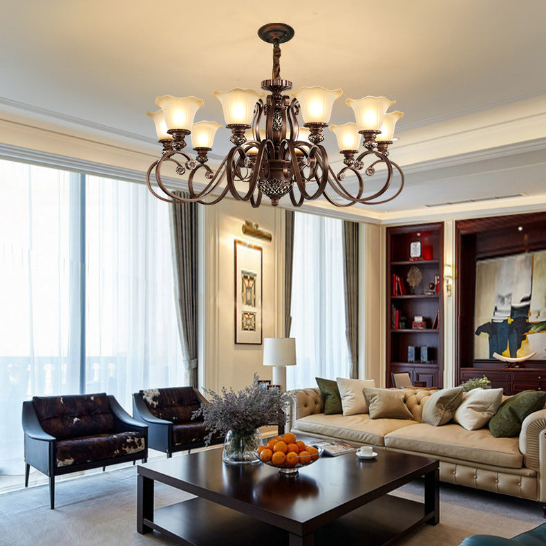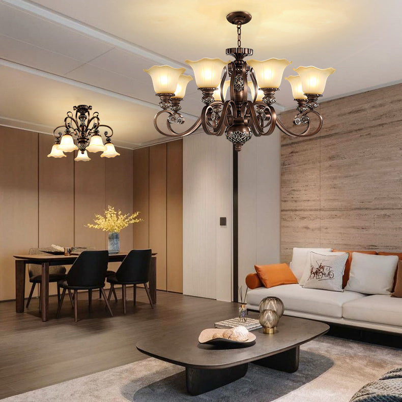 Traditional Vintage Flower Round Resin Iron Glass 3/6/8 Light Chandelier For Living Room