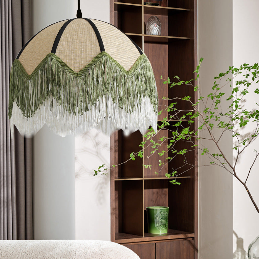 Traditional Vintage Flower Shaped Fabric Iron 1-Light Pendant Light For Living Room