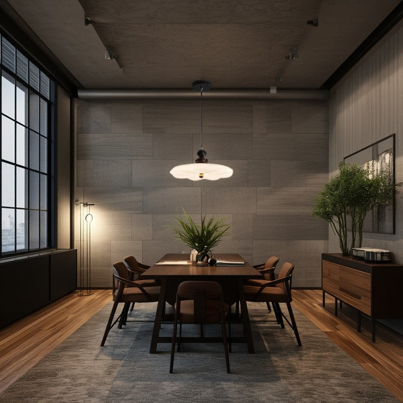 Traditional Vintage Flower Shaped Iron Rubberwood Plastic LED Pendant Light For Dining Room