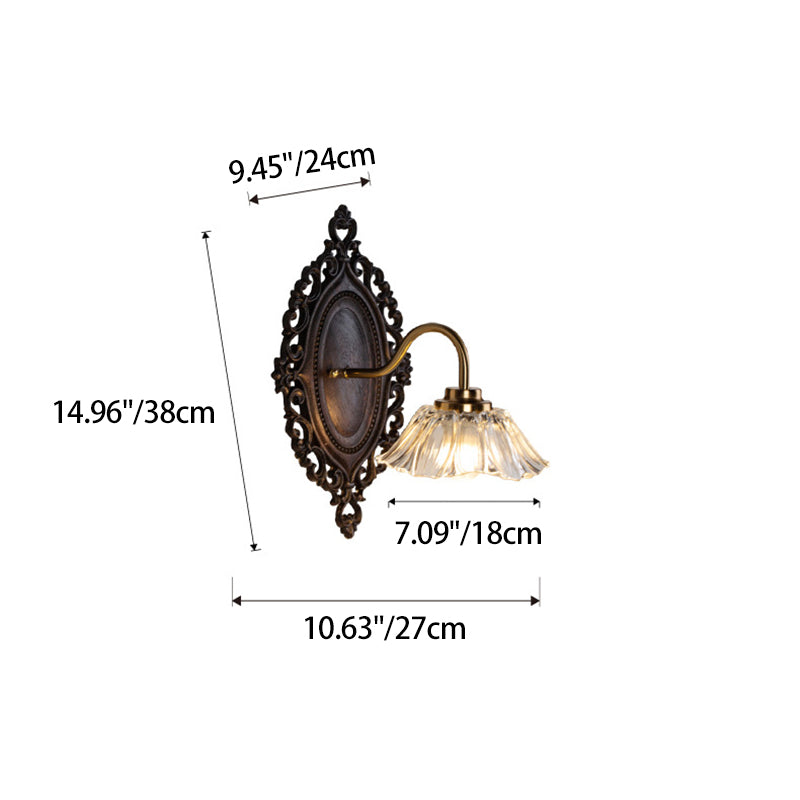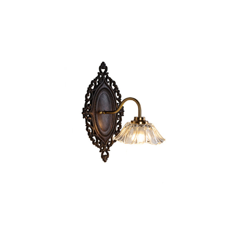 Traditional Vintage Flower Solid Wood Glass 1-Light Wall Sconce Lamp For Bedroom
