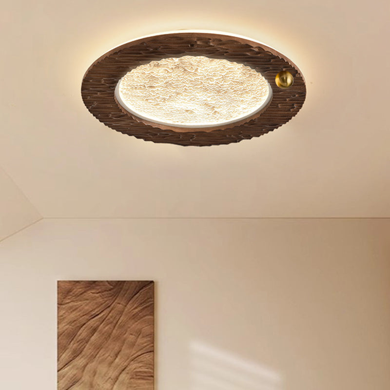 Traditional Vintage Round Oak Iron Acrylic LED Flush Mount Ceiling Light For Bedroom