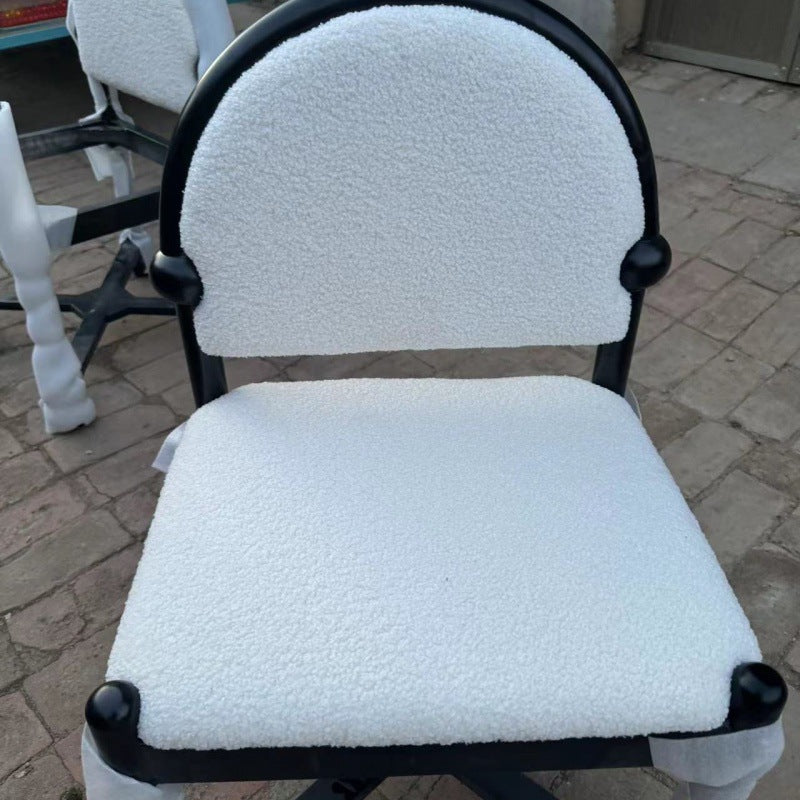 Traditional Vintage Semicircular Back Solid Wood Lambswool Vanity Stool Backrest For Bedroom