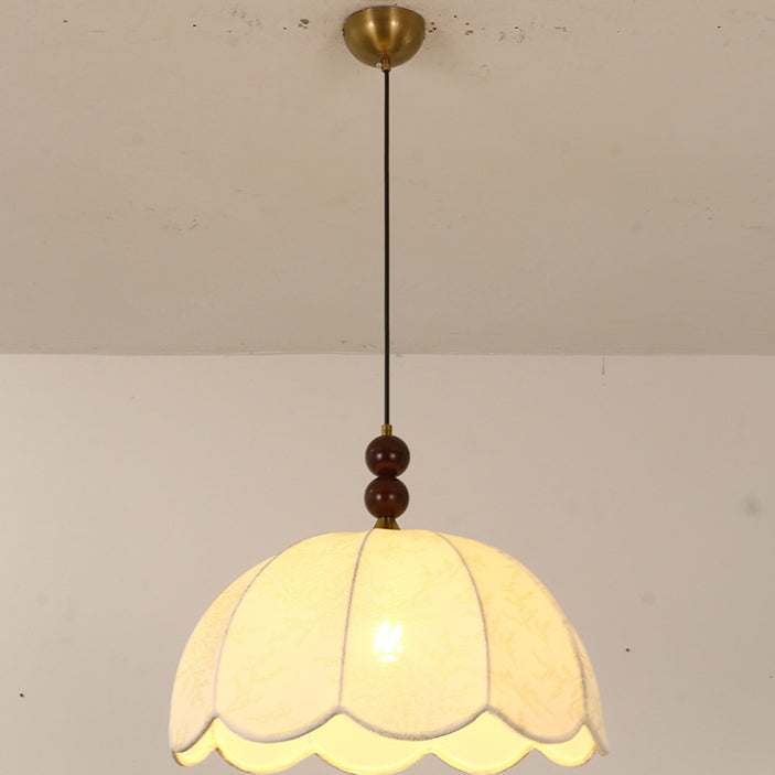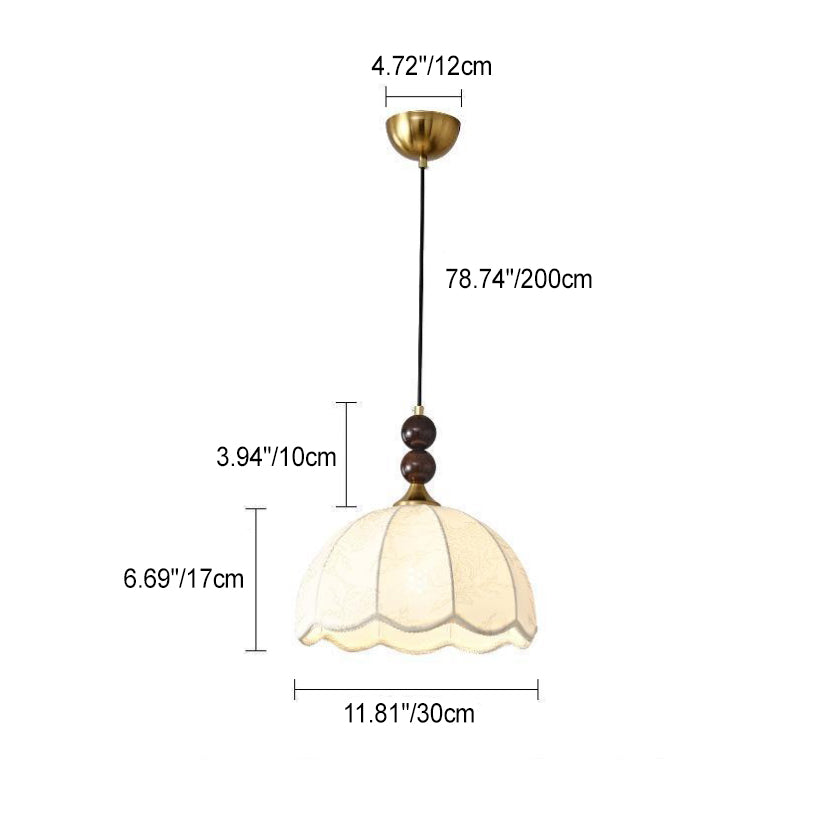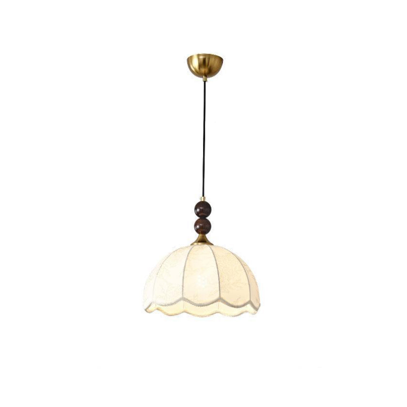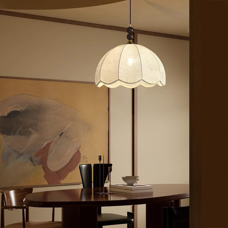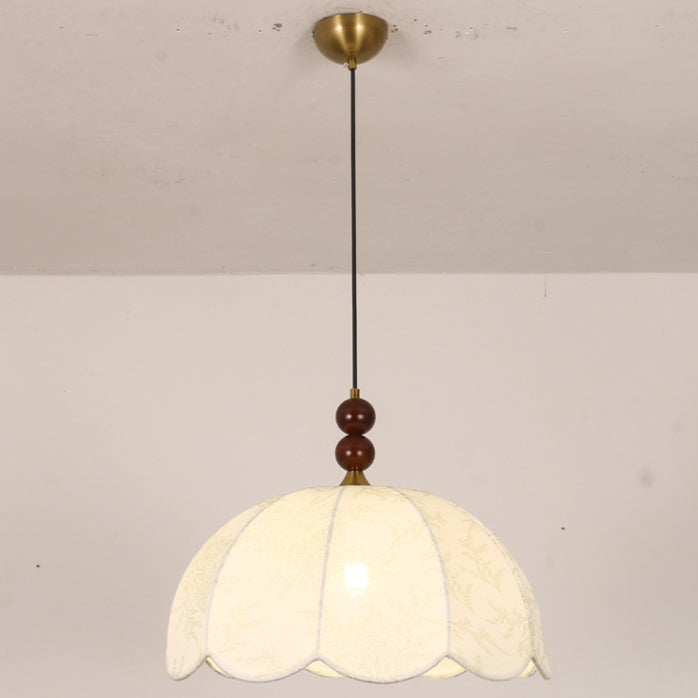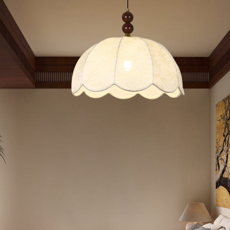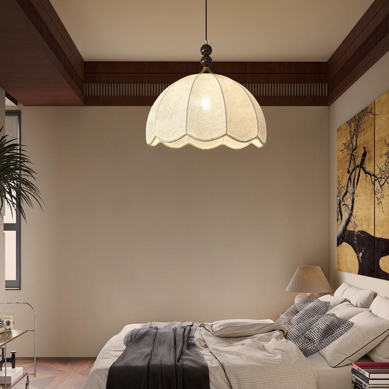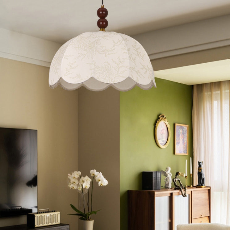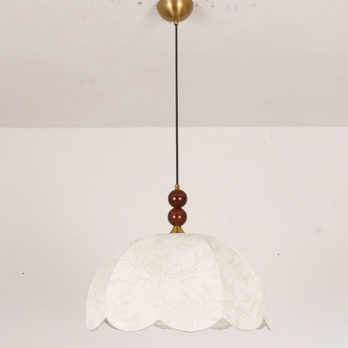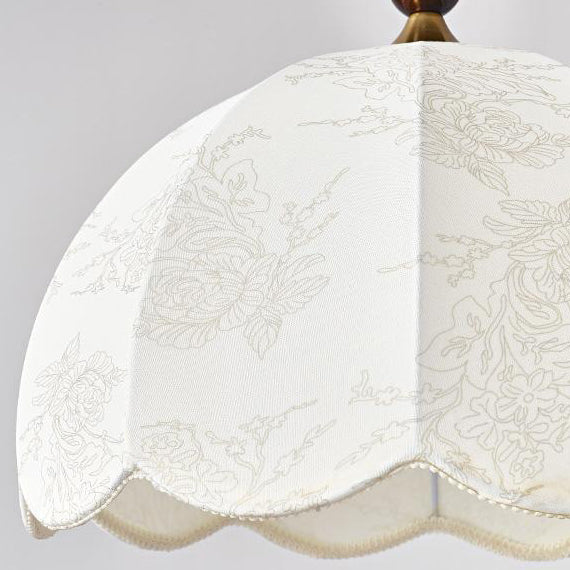 Traditional Vintage Solid Wood Flower Fabric Shade 1-Light Pendant Light For Living Room