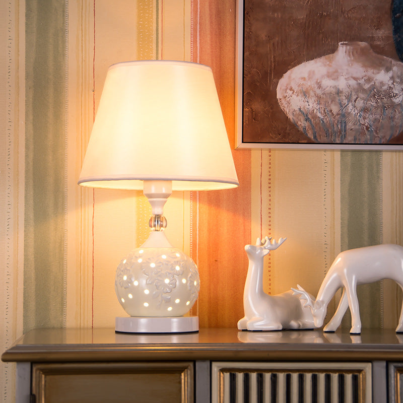 Traditional Vintage Sphere Ceramic Fabric 1-Light Table Lamp For Bedroom