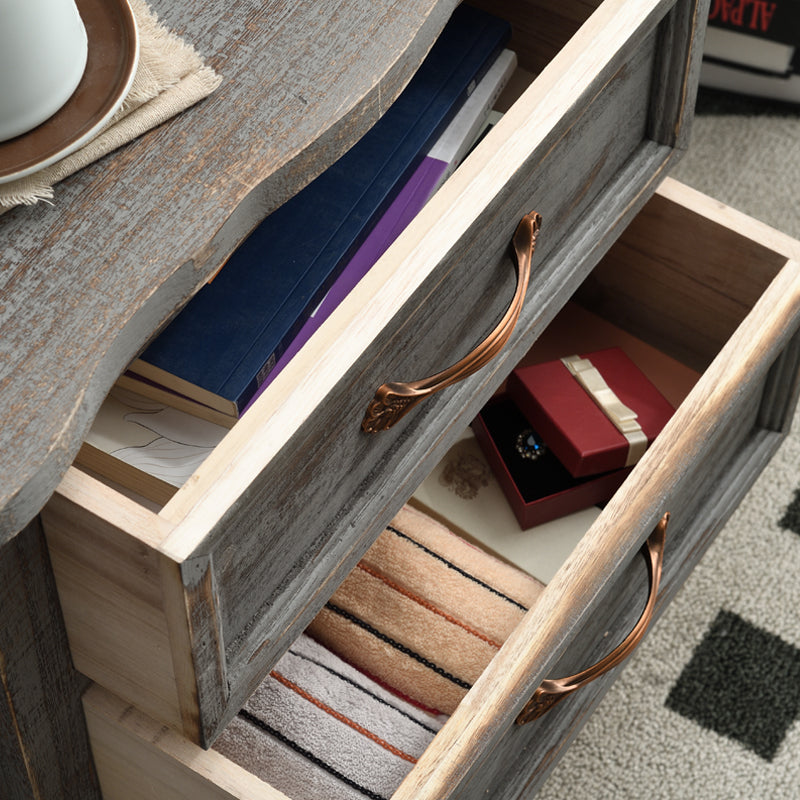 Traditional Vintage Square Cube Paulownia Wood Hardware Nightstand 2 - Drawer For Bedroom