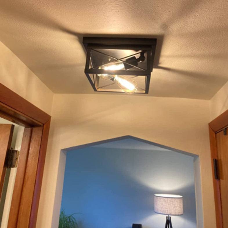 Traditional Vintage Square Rectangular Iron 2-Light Flush Mount Ceiling Light For Living Room