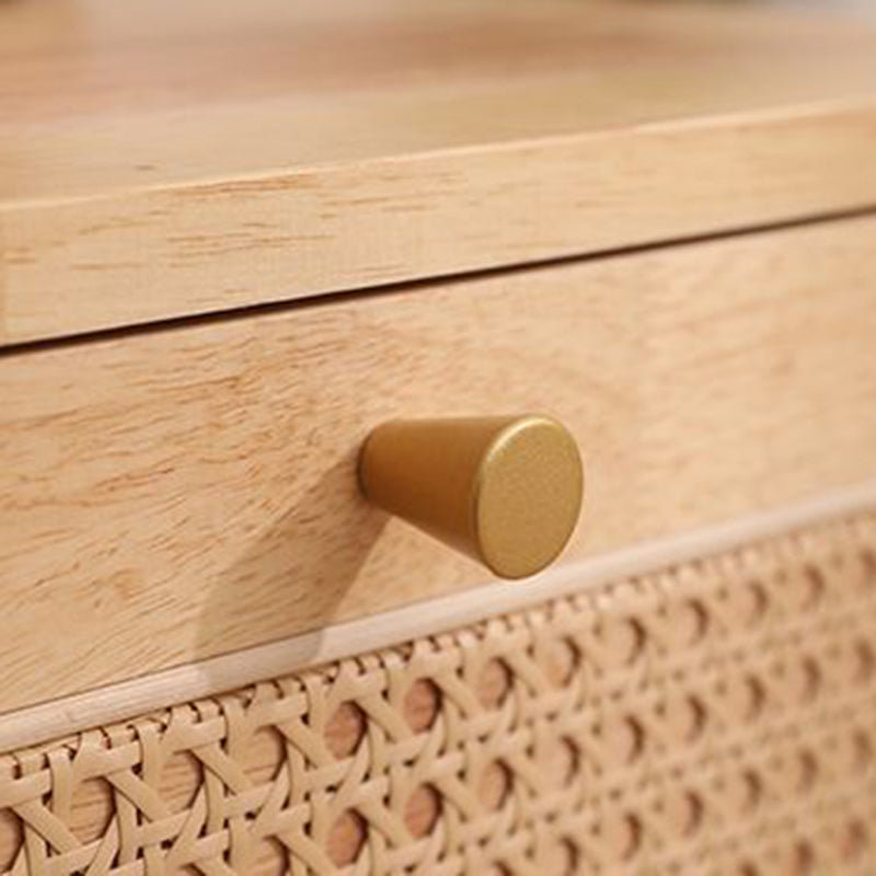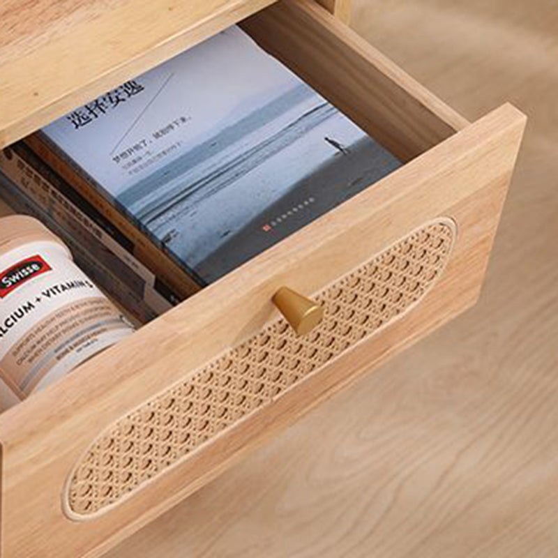Traditional Vintage Square Solid Wood Top Rattan Woven Nightstand 2-Drawer For Bedroom