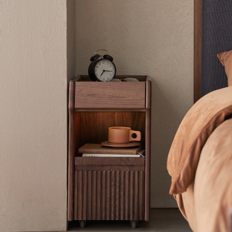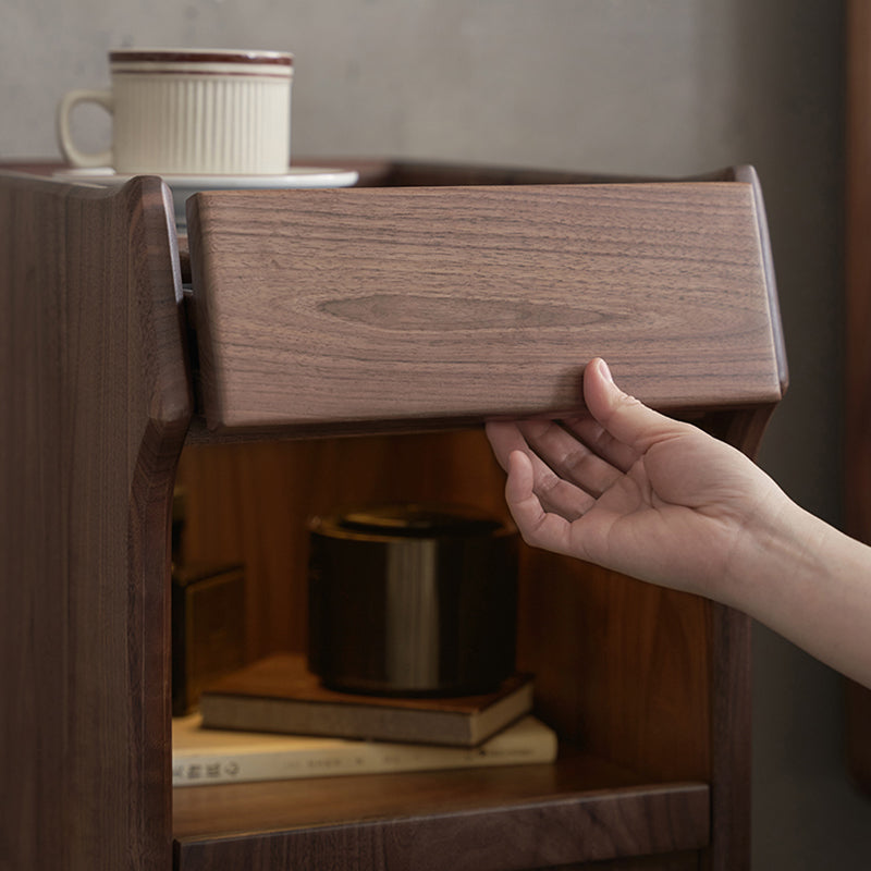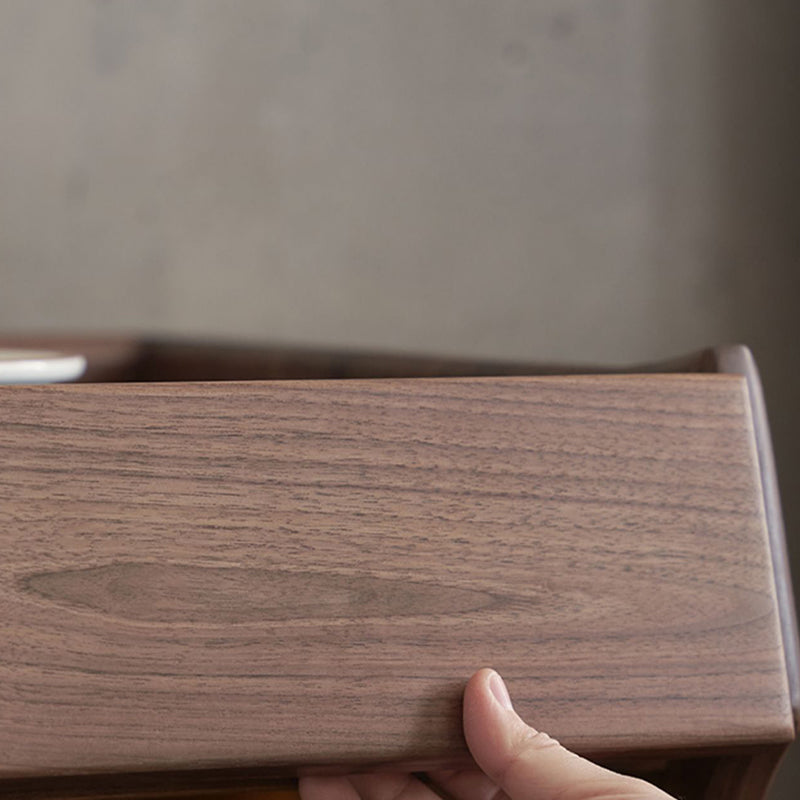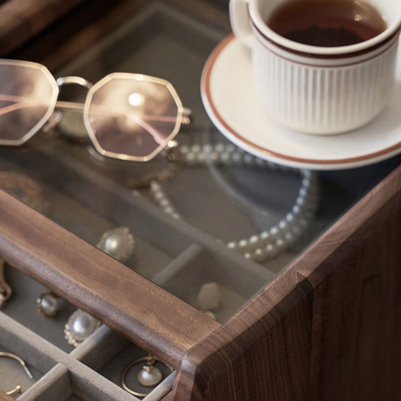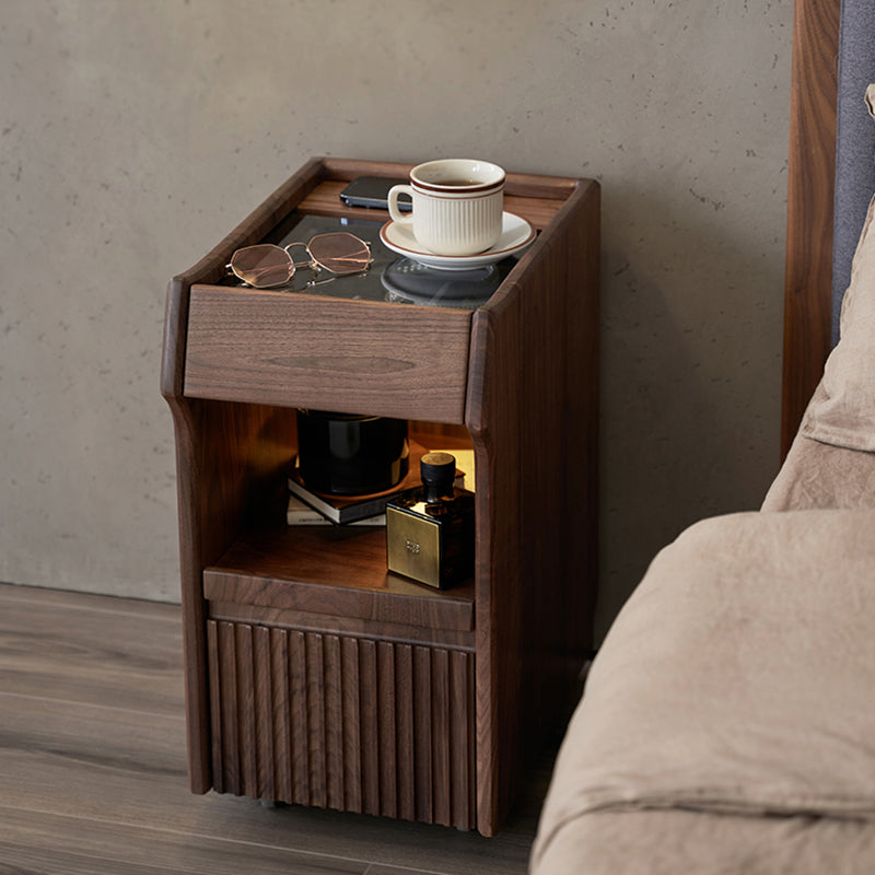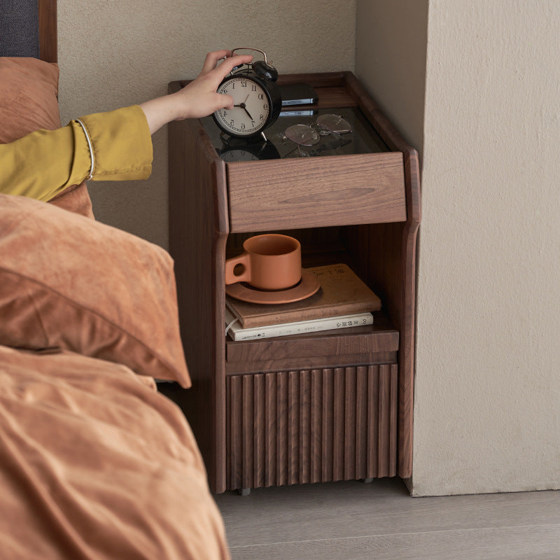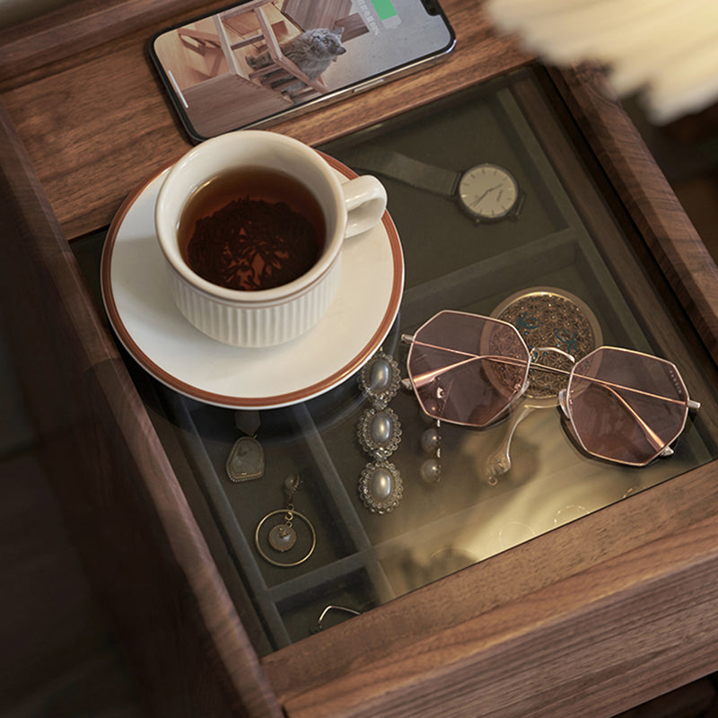 Traditional Vintage Square Tabletop Black Walnut Glass Nightstand 1-Drawer For Bedroom