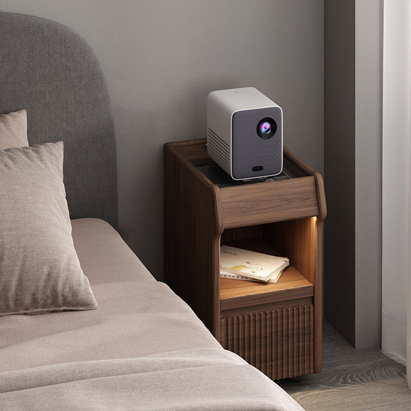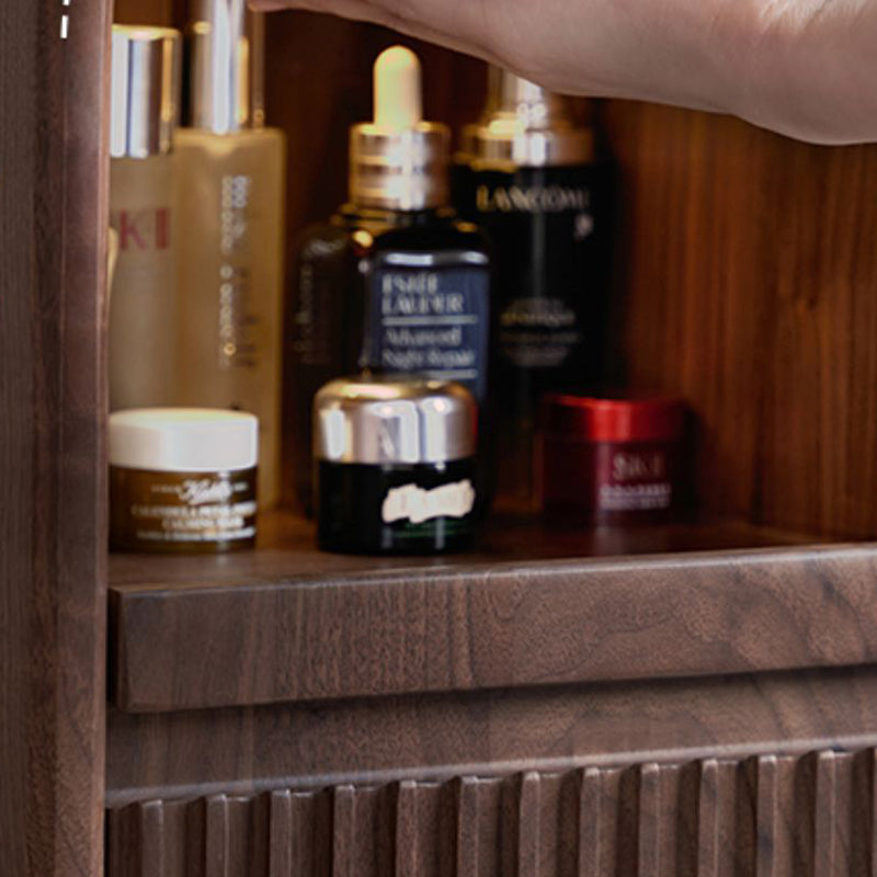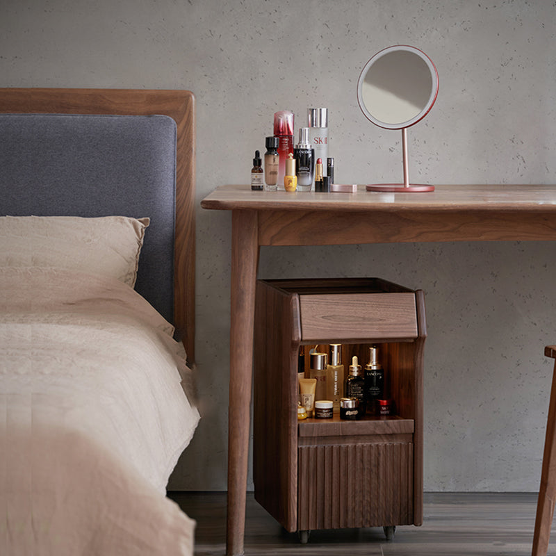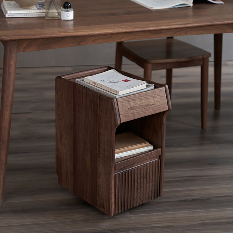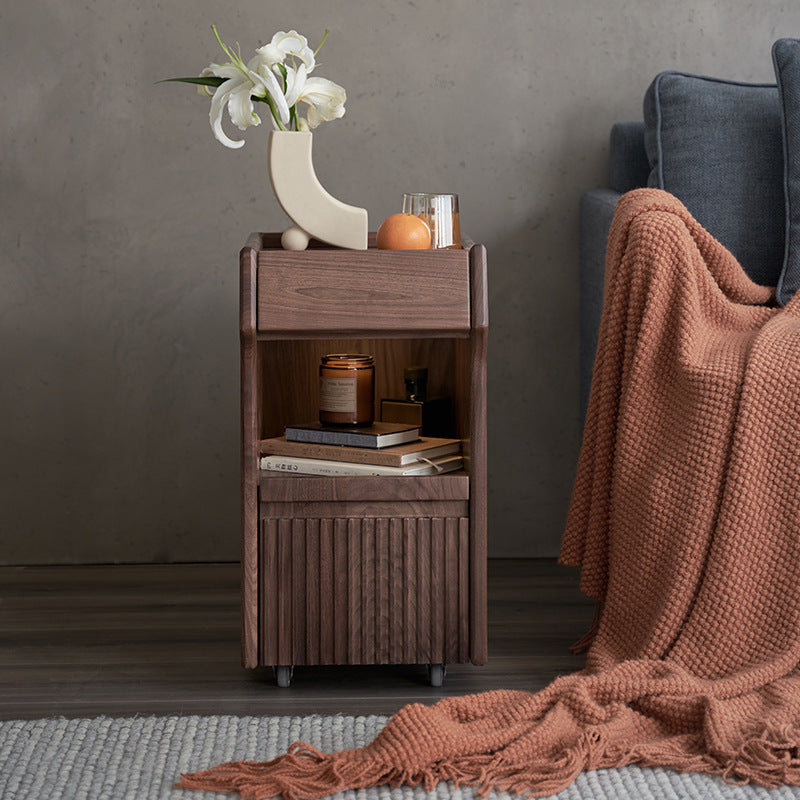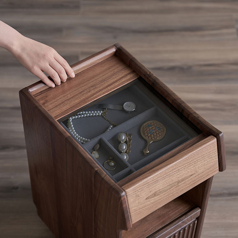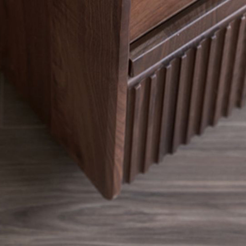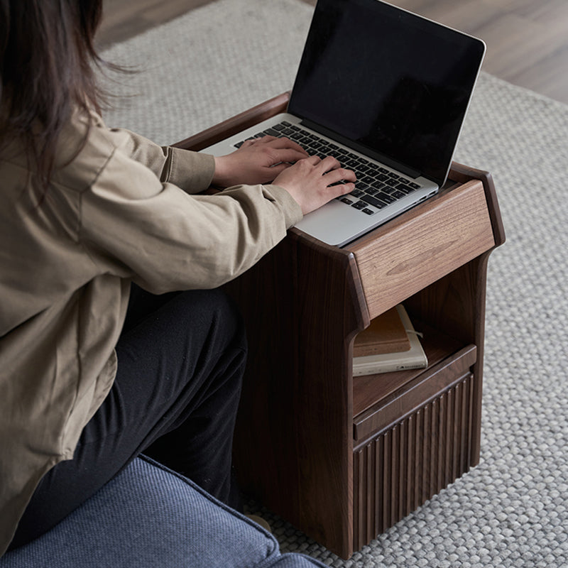 Traditional Vintage Square Tabletop Black Walnut Glass Nightstand 1-Drawer For Bedroom