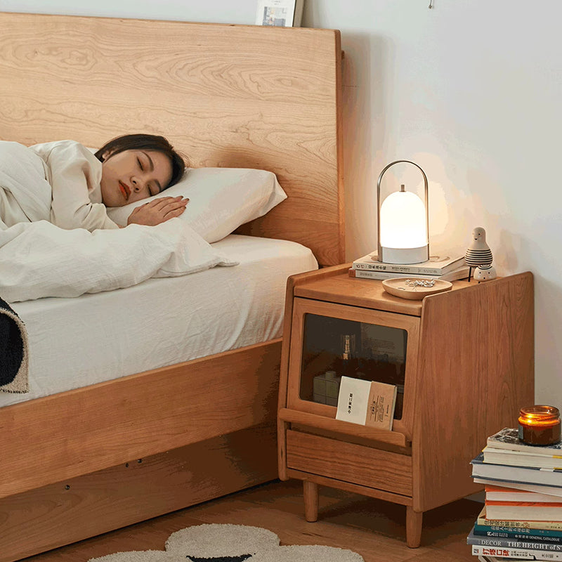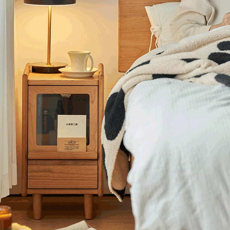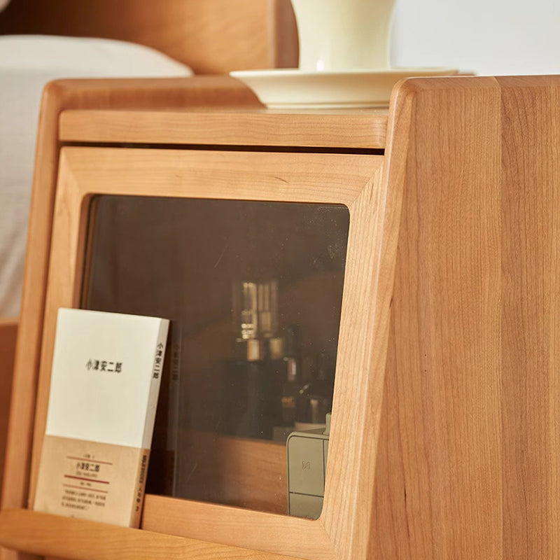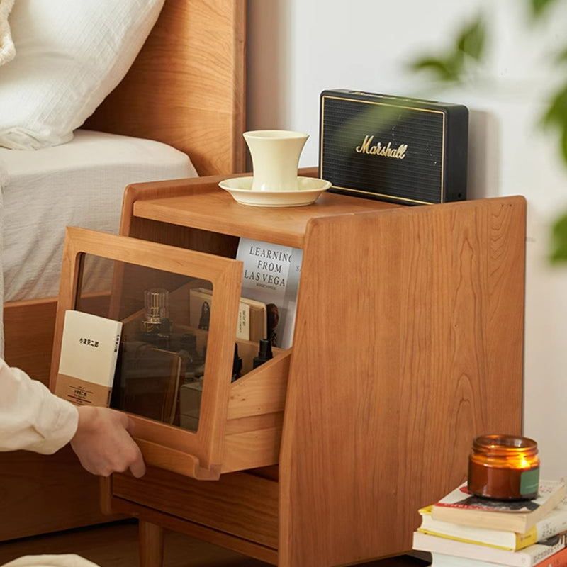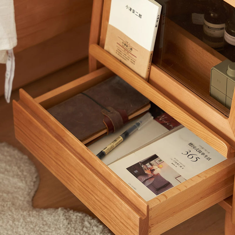 Traditional Vintage Trapezoidal Cherry Wood Nightstand 2-Drawer For Bedroom