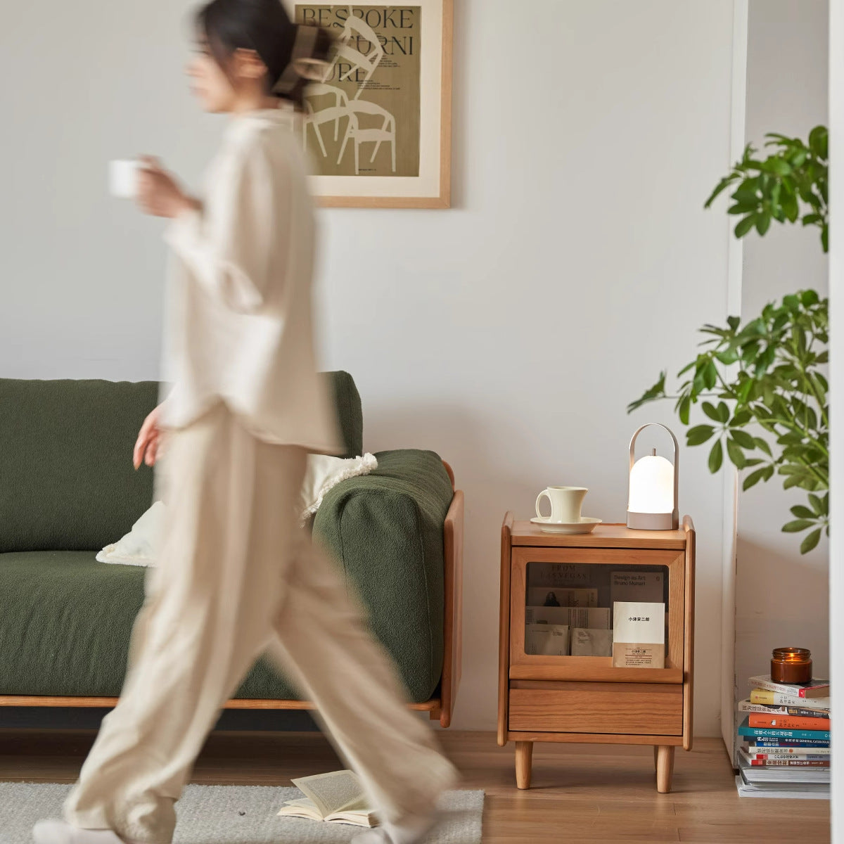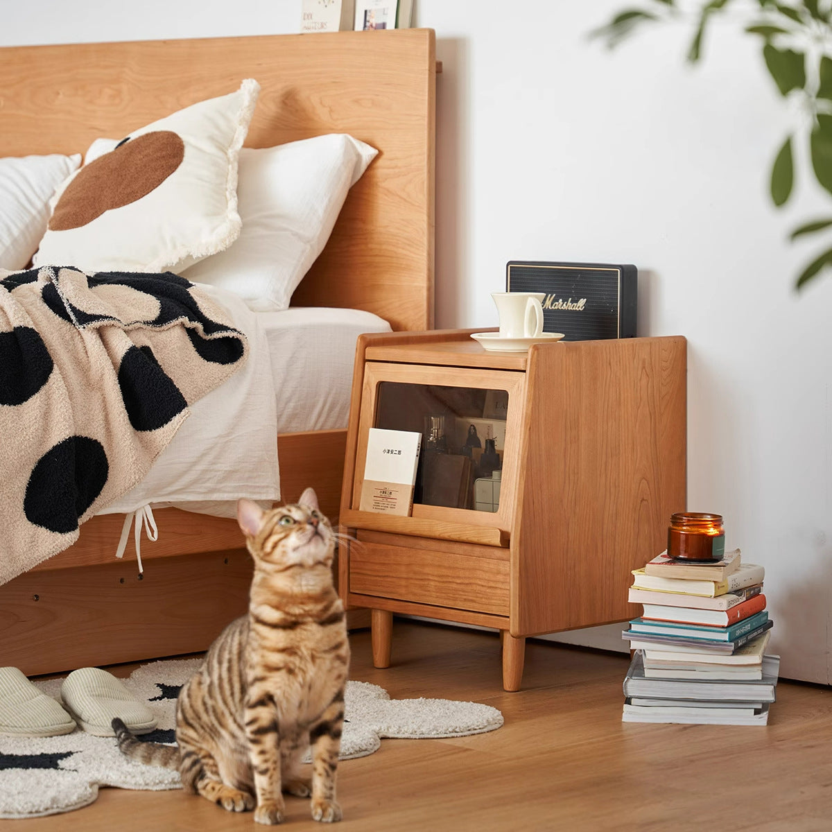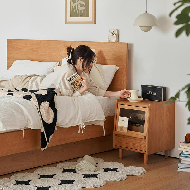 Traditional Vintage Trapezoidal Cherry Wood Nightstand 2-Drawer For Bedroom