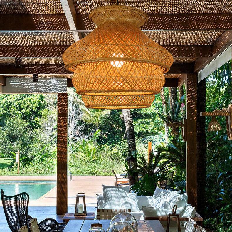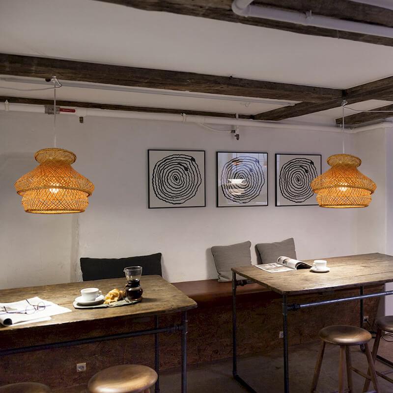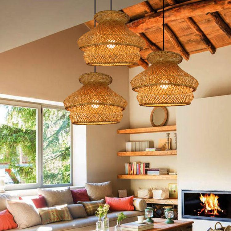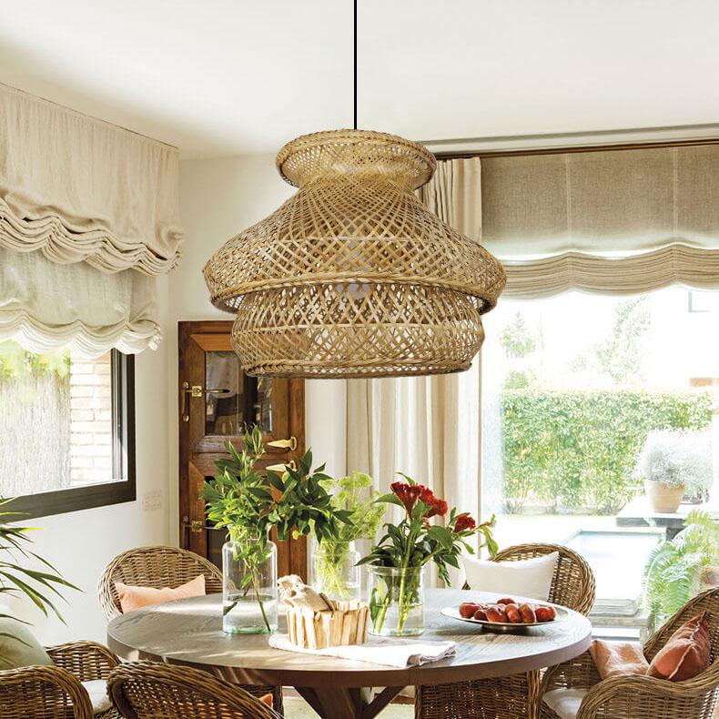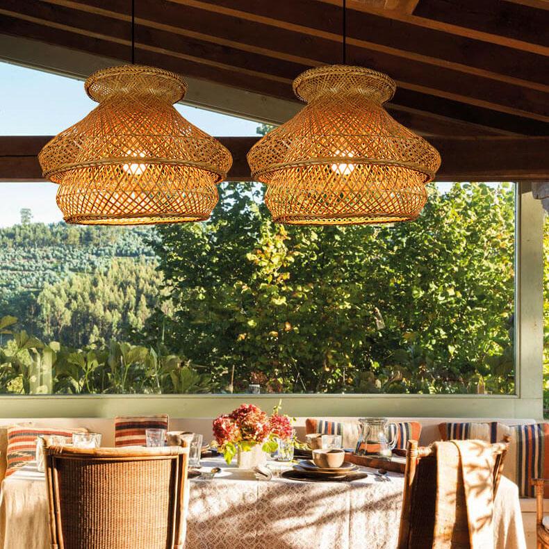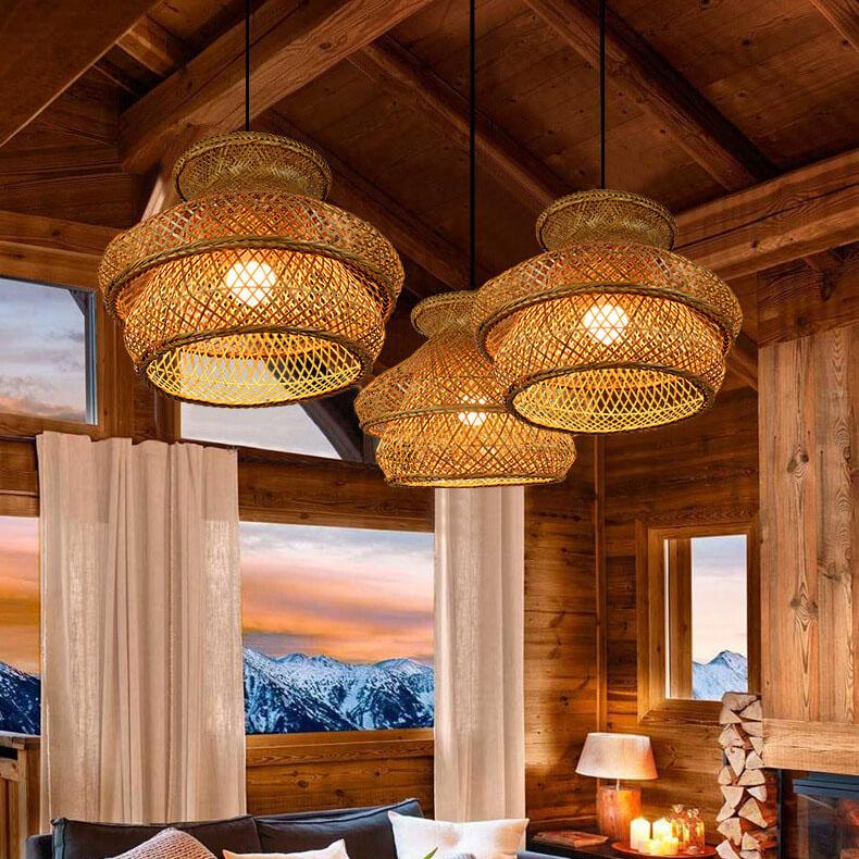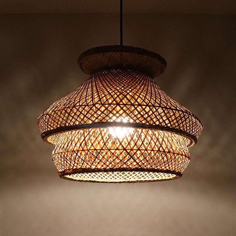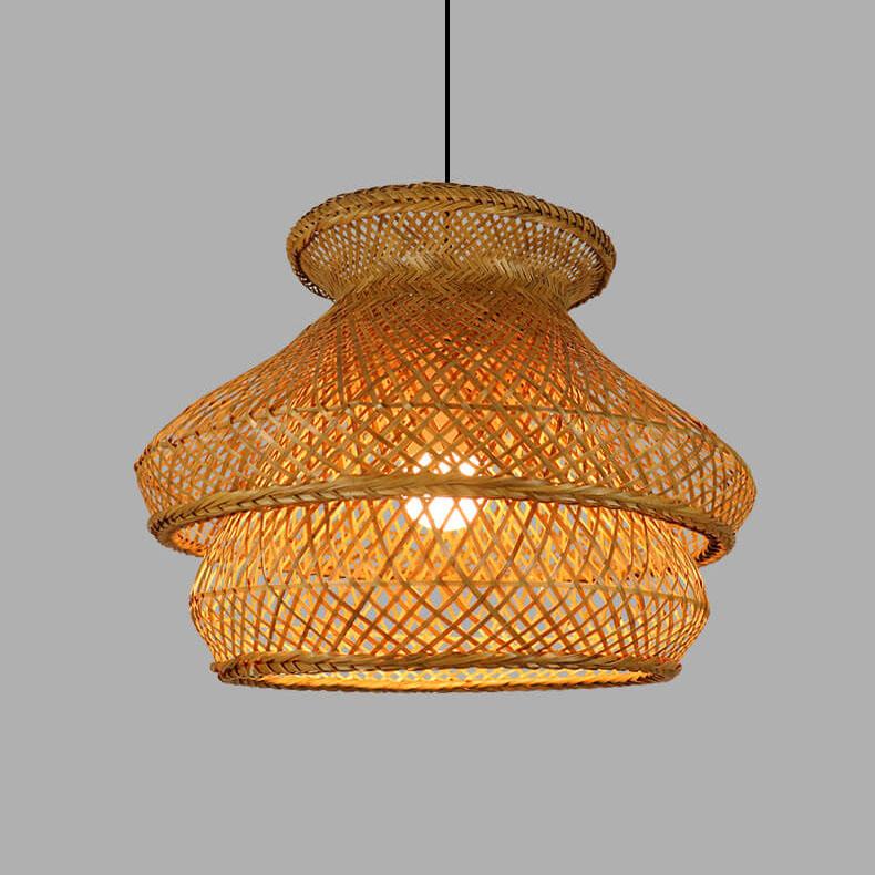Vintage Bamboo Weaving Multi-Layered Dome 1-Light Pendant Light
