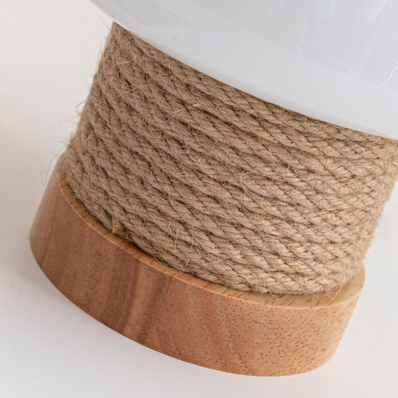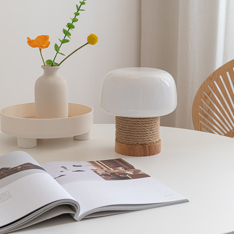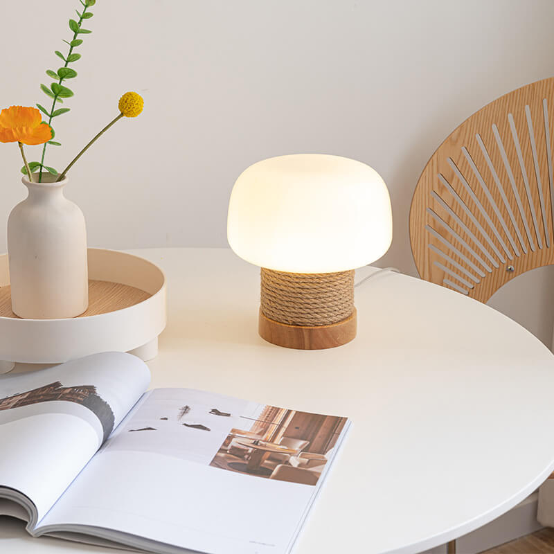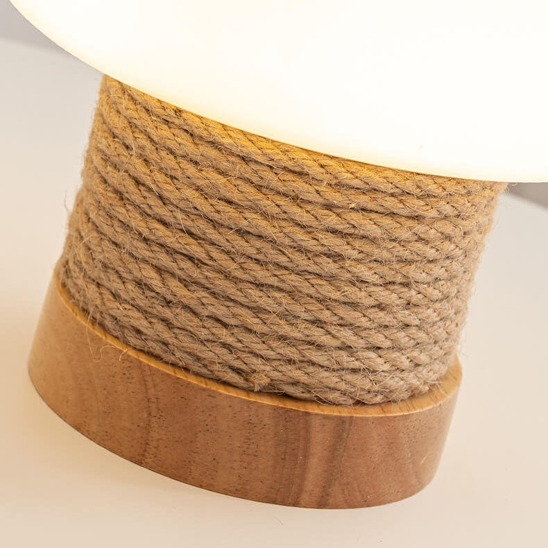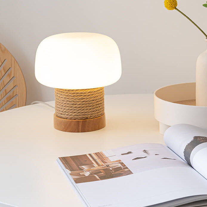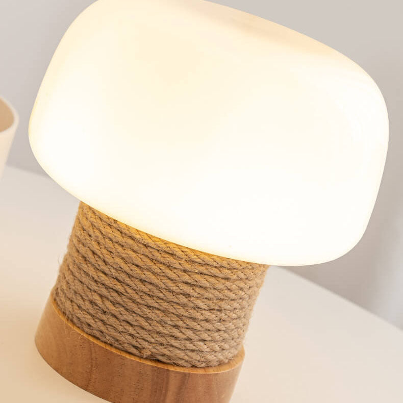 Vintage Creamy Mushroom Glass Twine Oak 1-Light Table Lamp