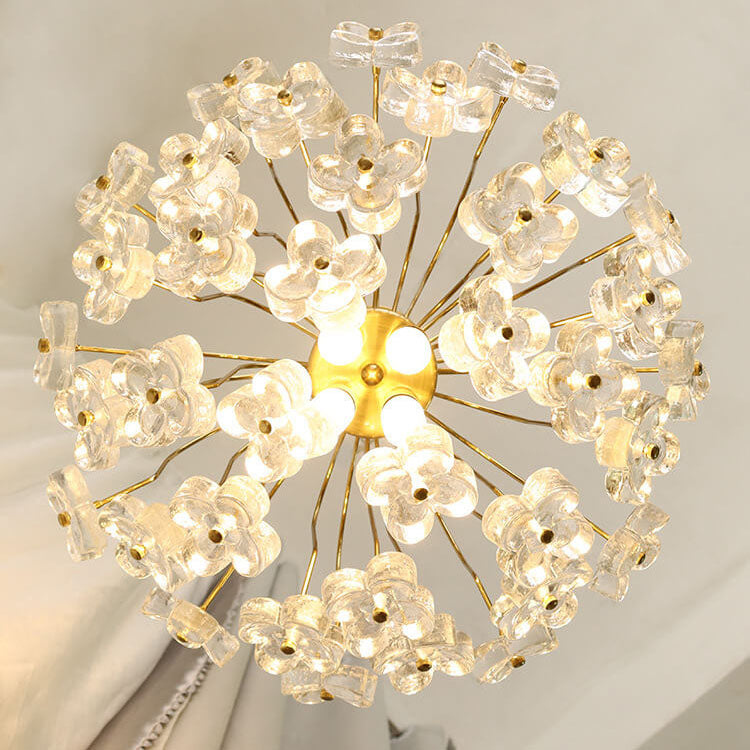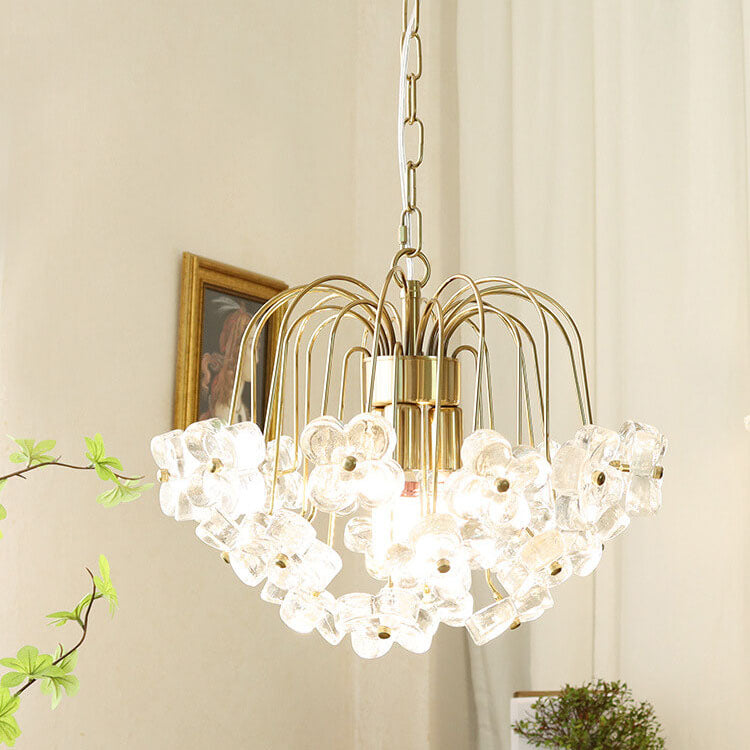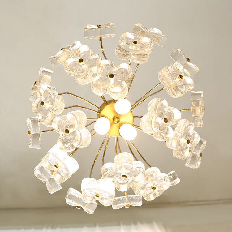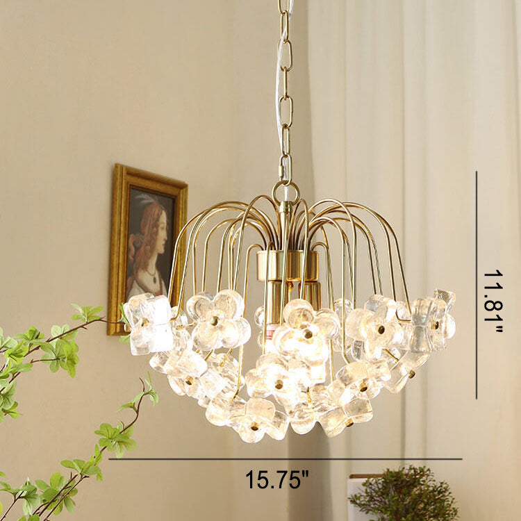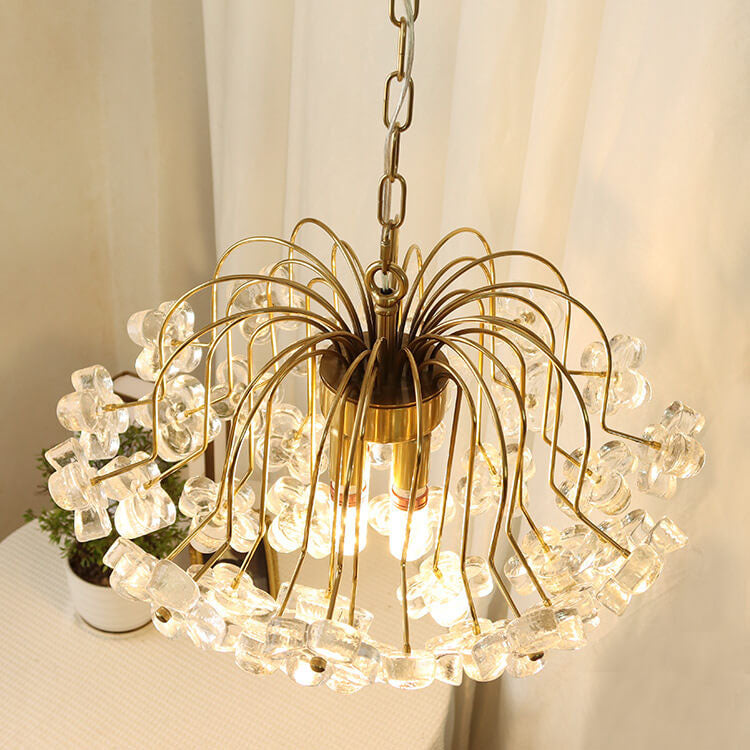 Vintage Four Leaf Flower Ice Glass 3/4 Light Chandelier