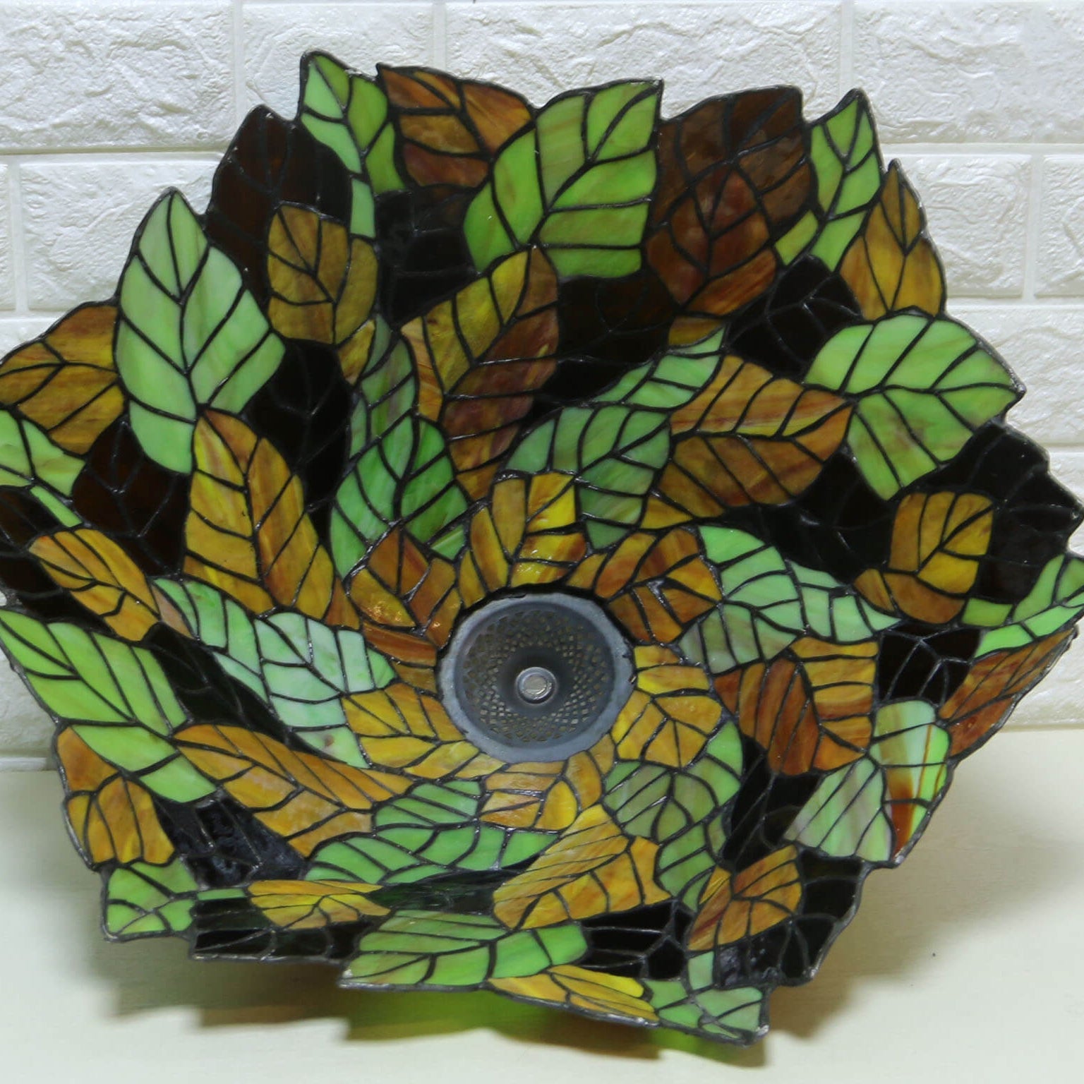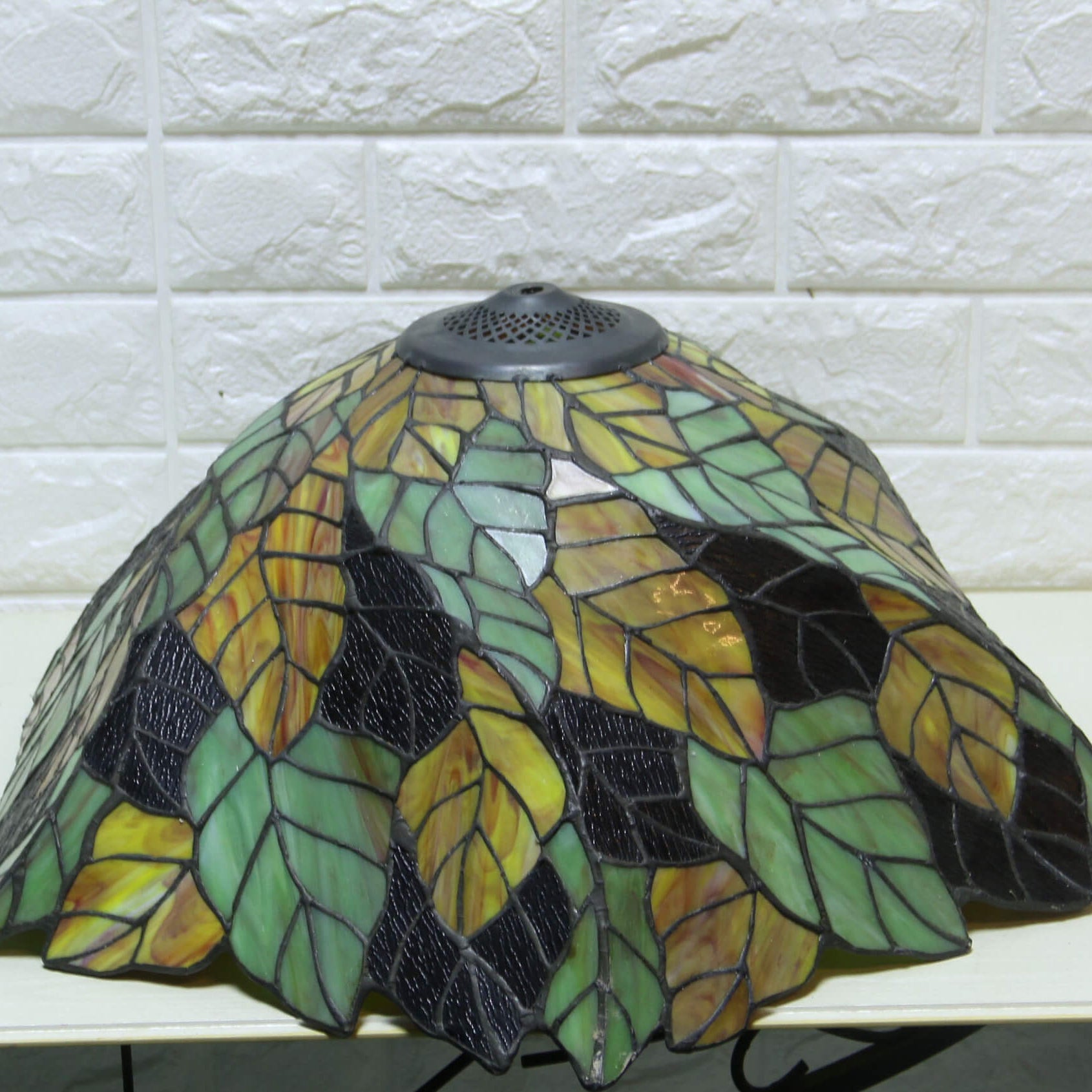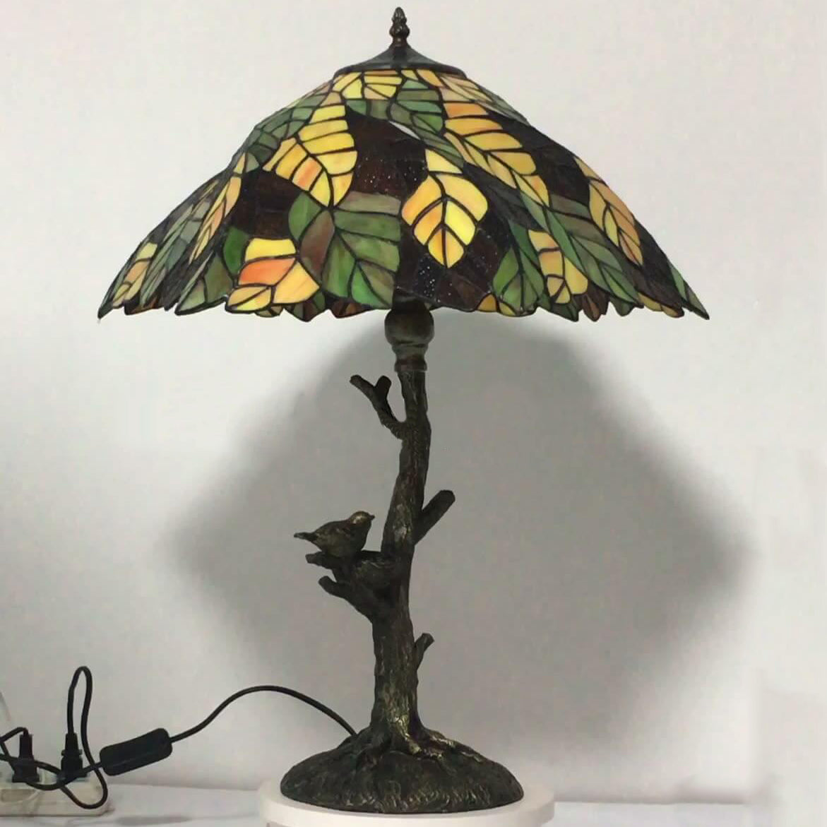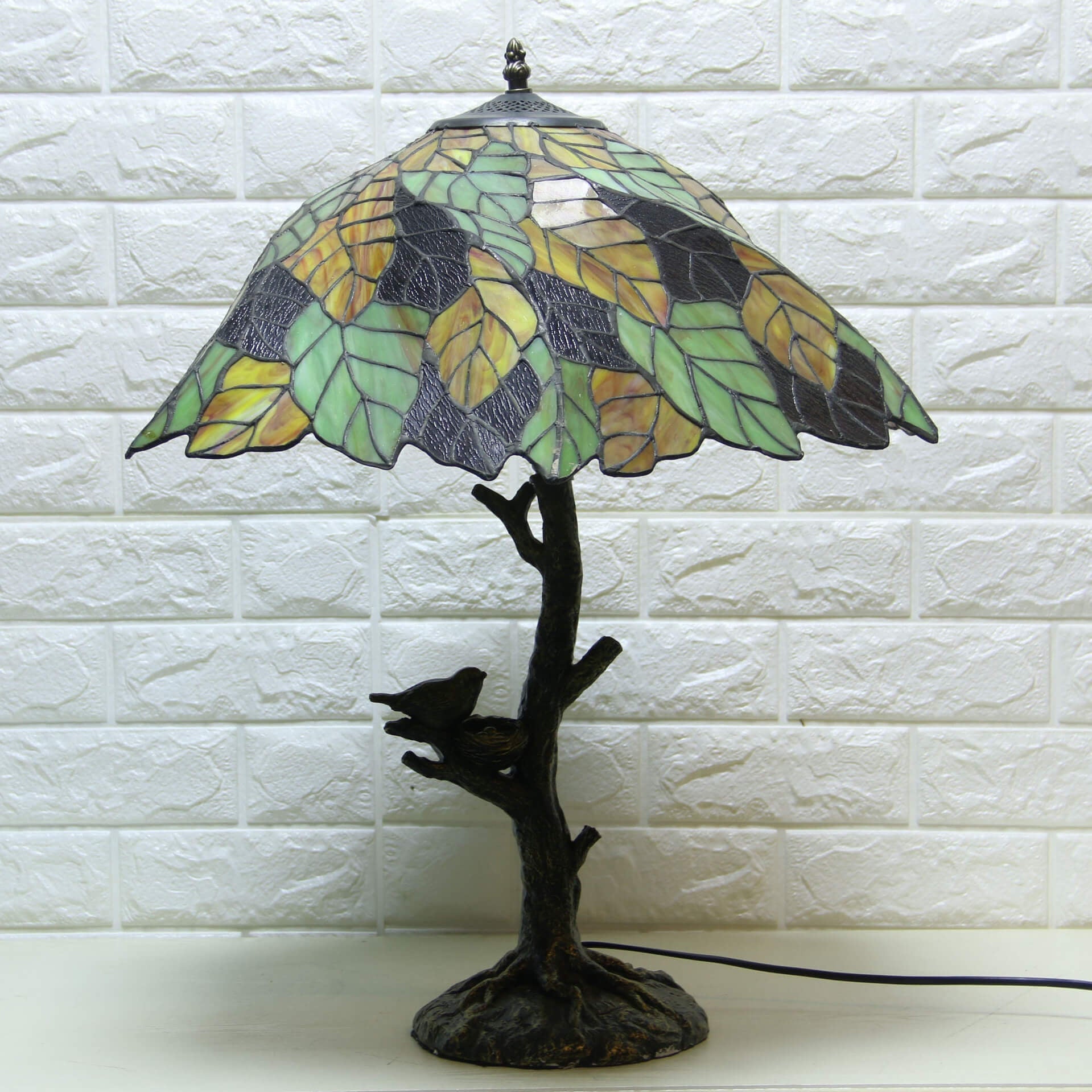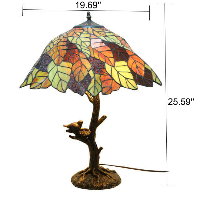 Vintage Tiffany Leaf Stained Glass 2-Light Table Lamp