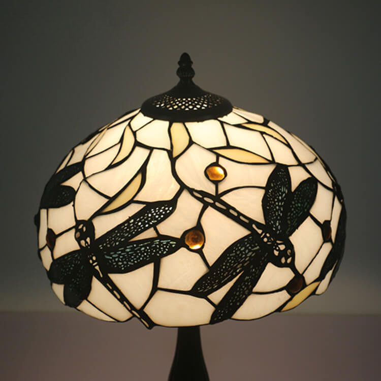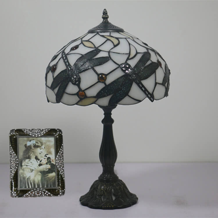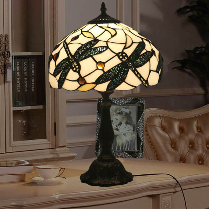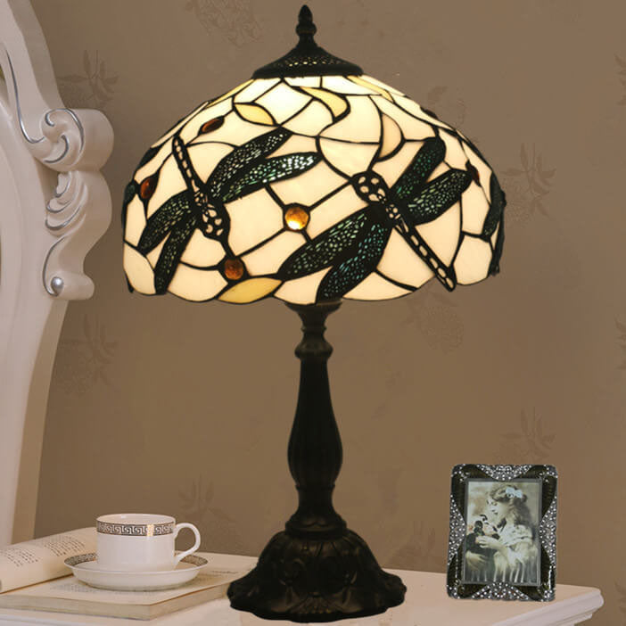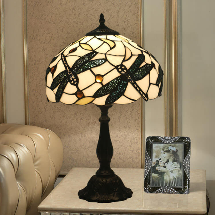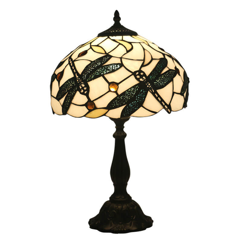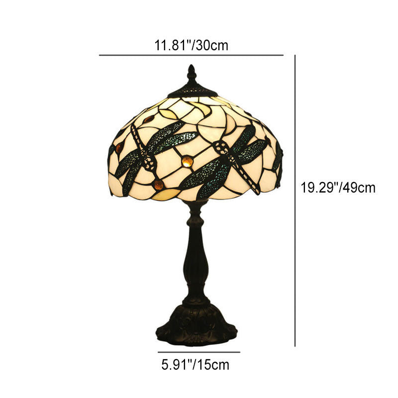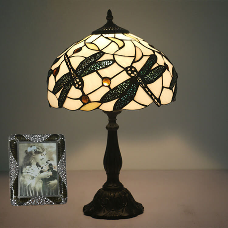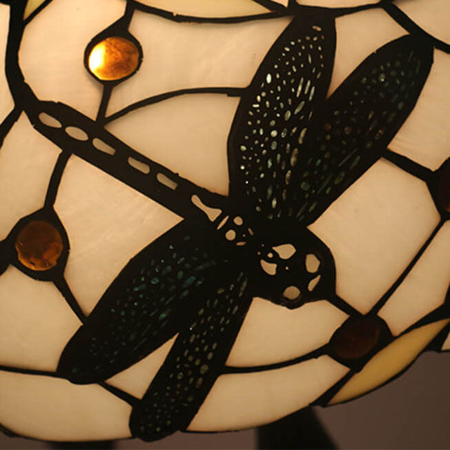 Vintage Tiffany Resin Animal Dragonfly Stained Glass 1-Light Table Lamp