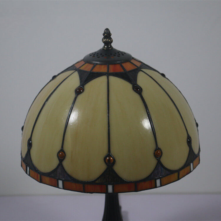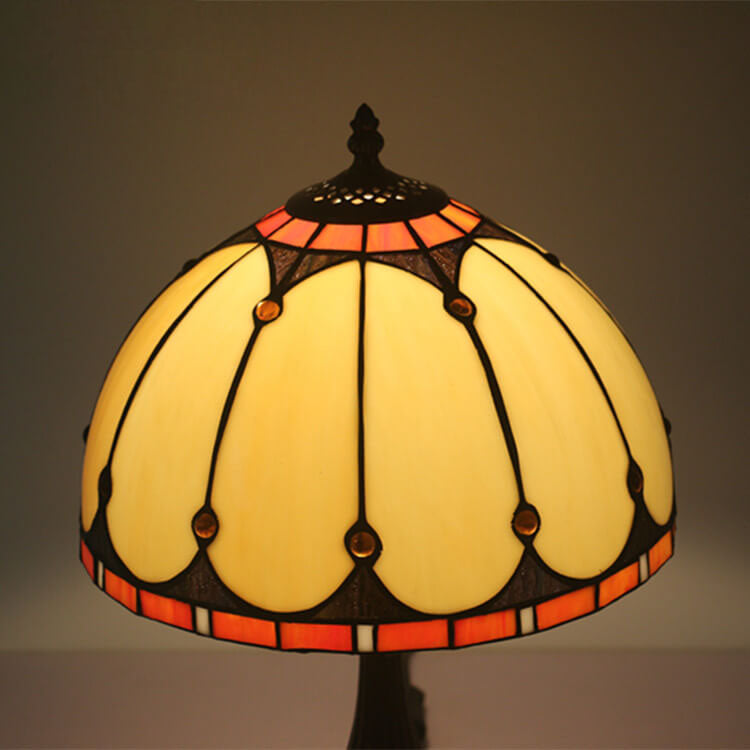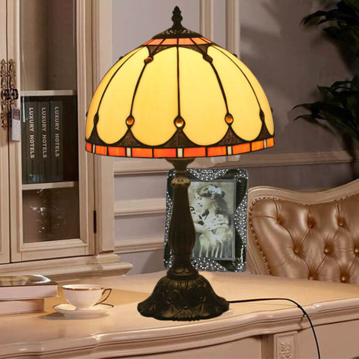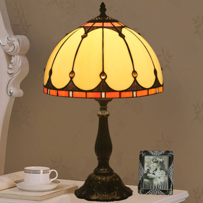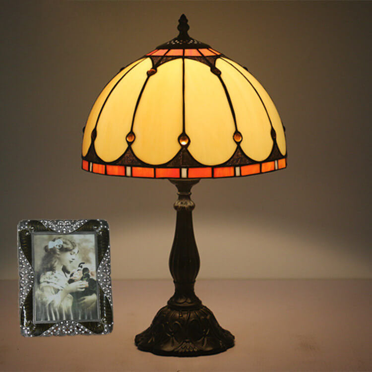 Vintage Tiffany Stained Glass Mediterranean Dome 1-Light Table Lamp