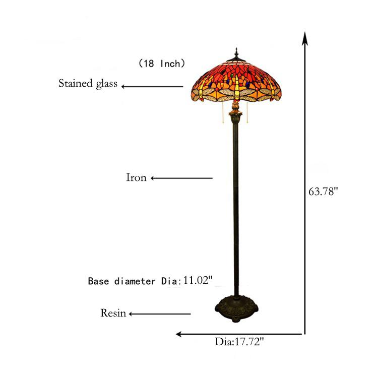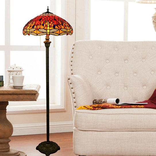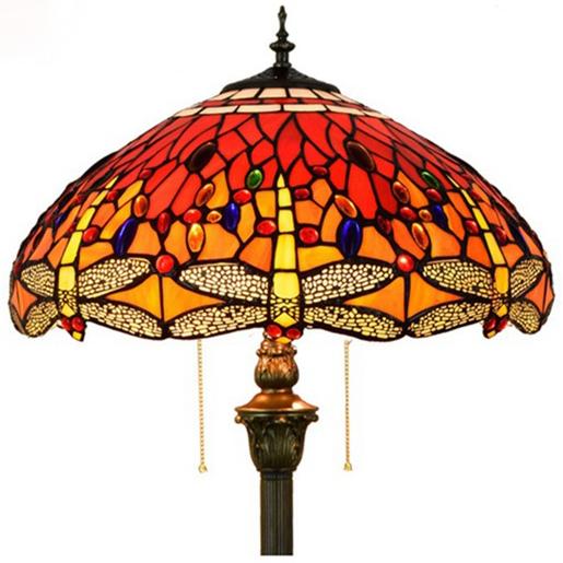 Vintage Tiffany Stained Glass Red Dragonfly 2-Light Standing Floor Lamp