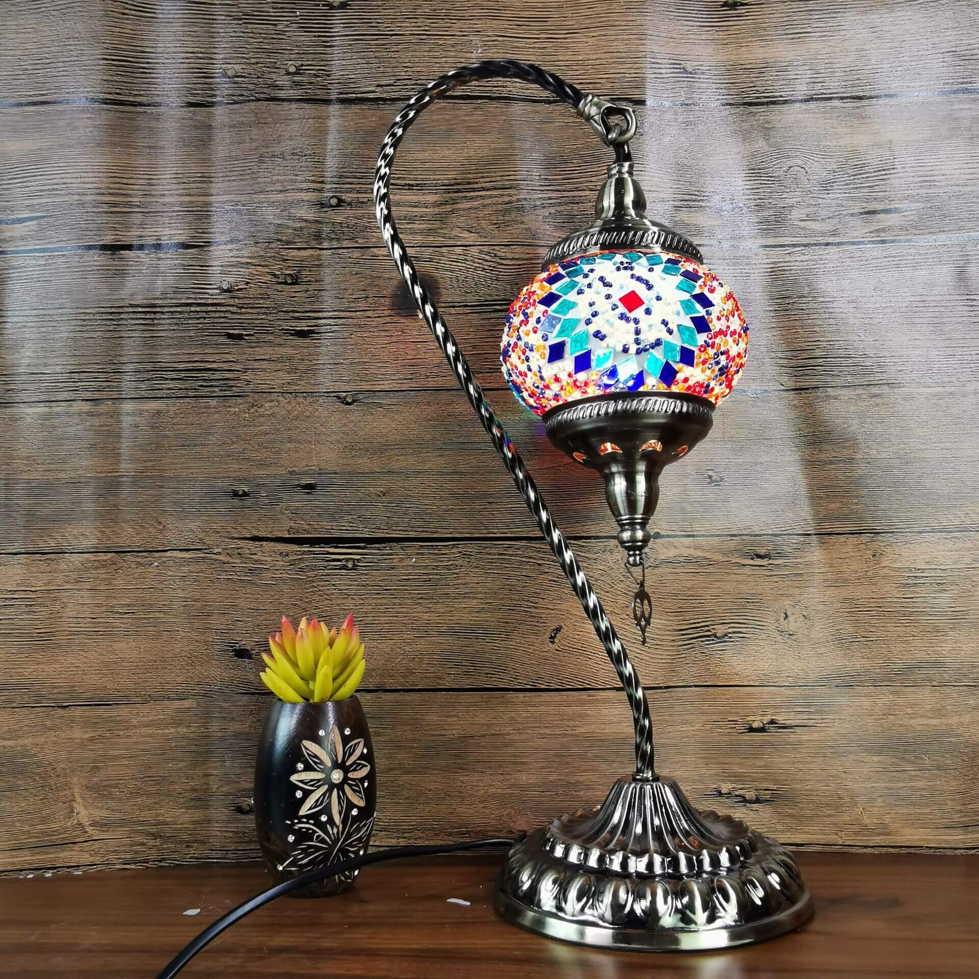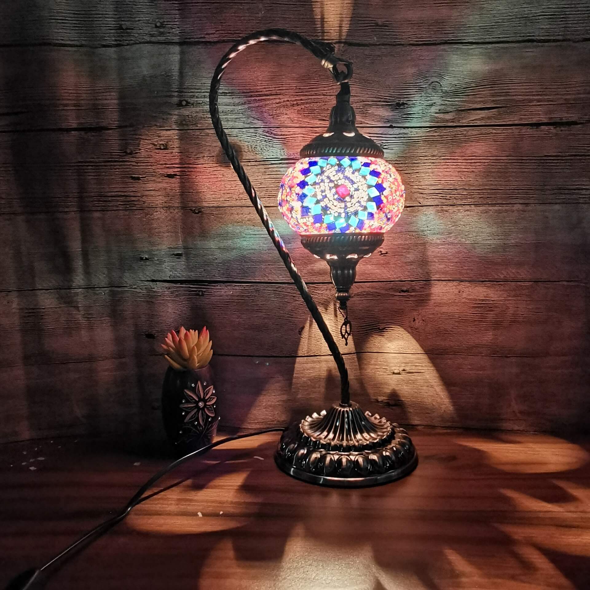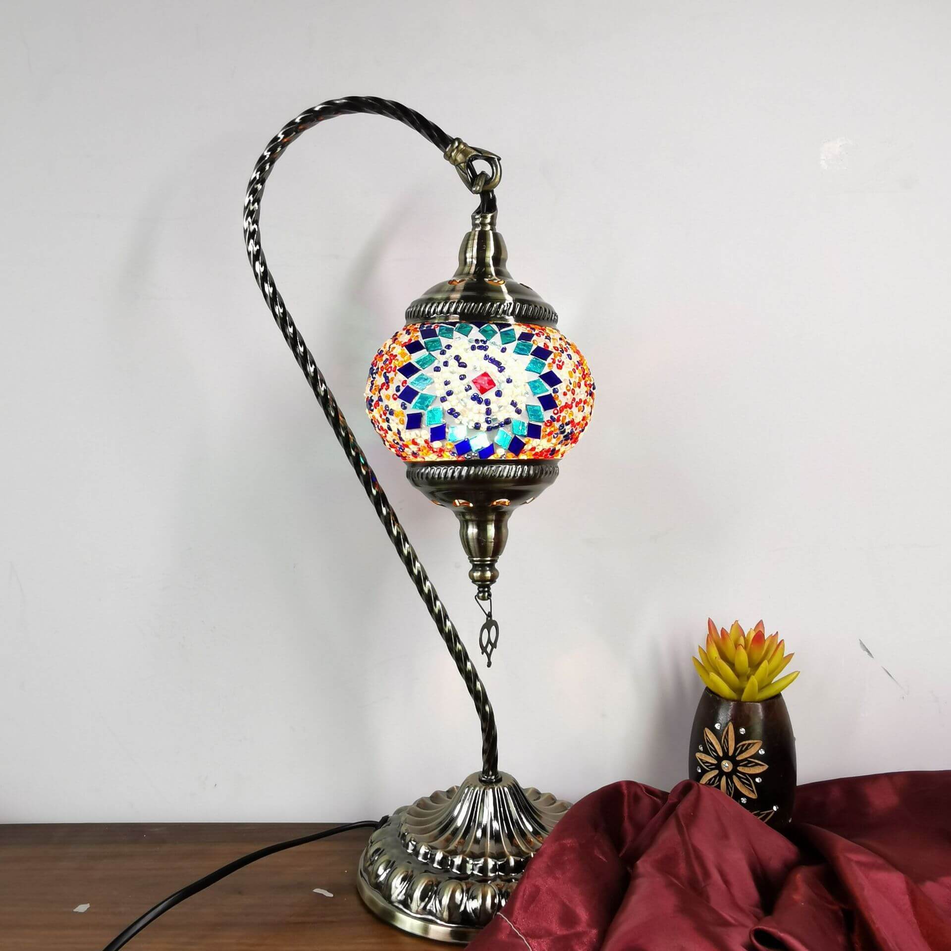 Vintage Turkish Stained Glass Swan Neck 1-Light Table Lamp
