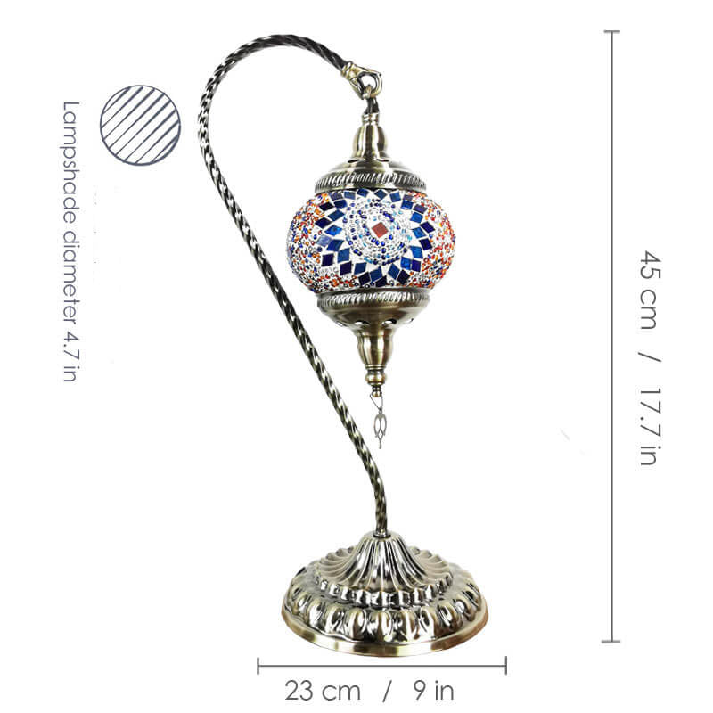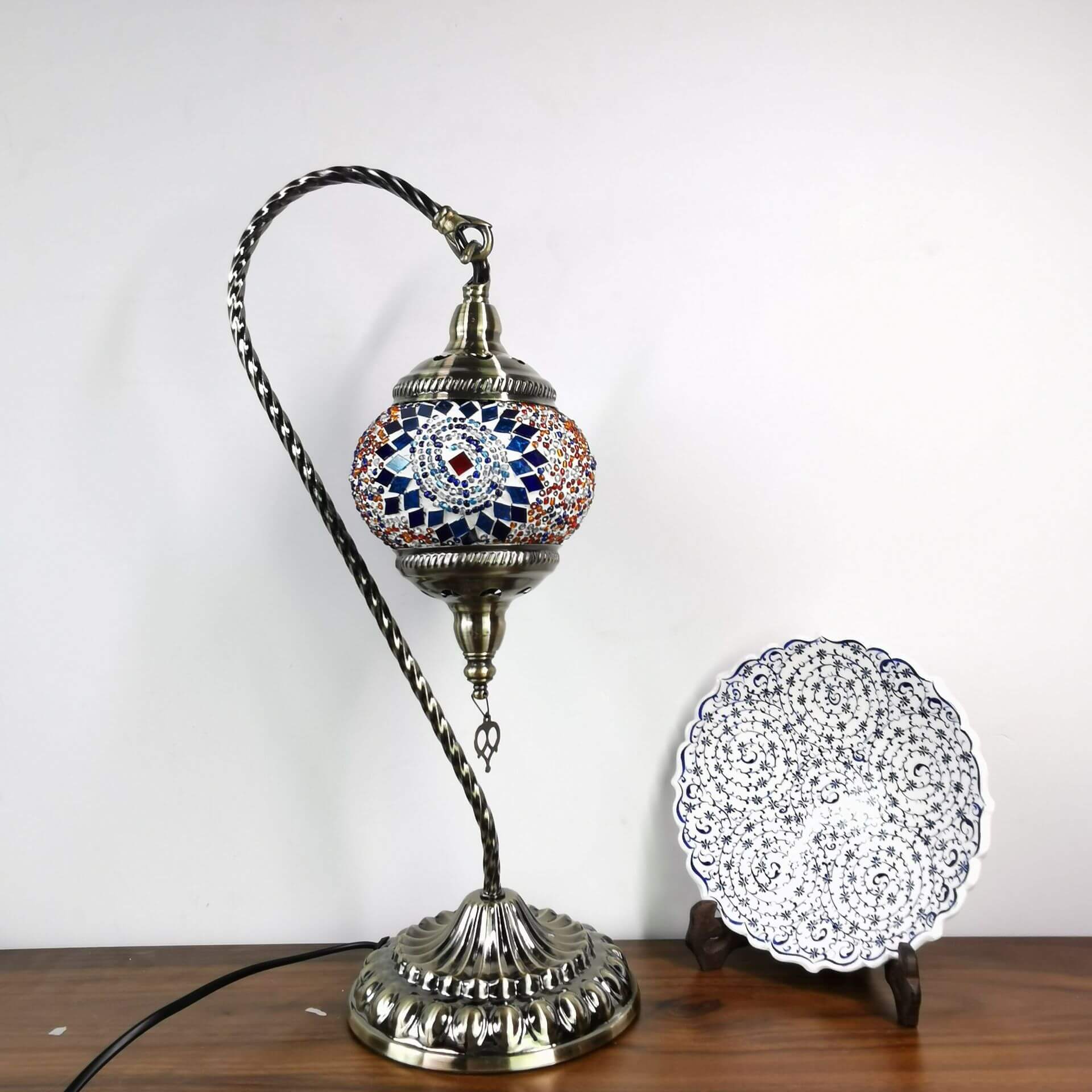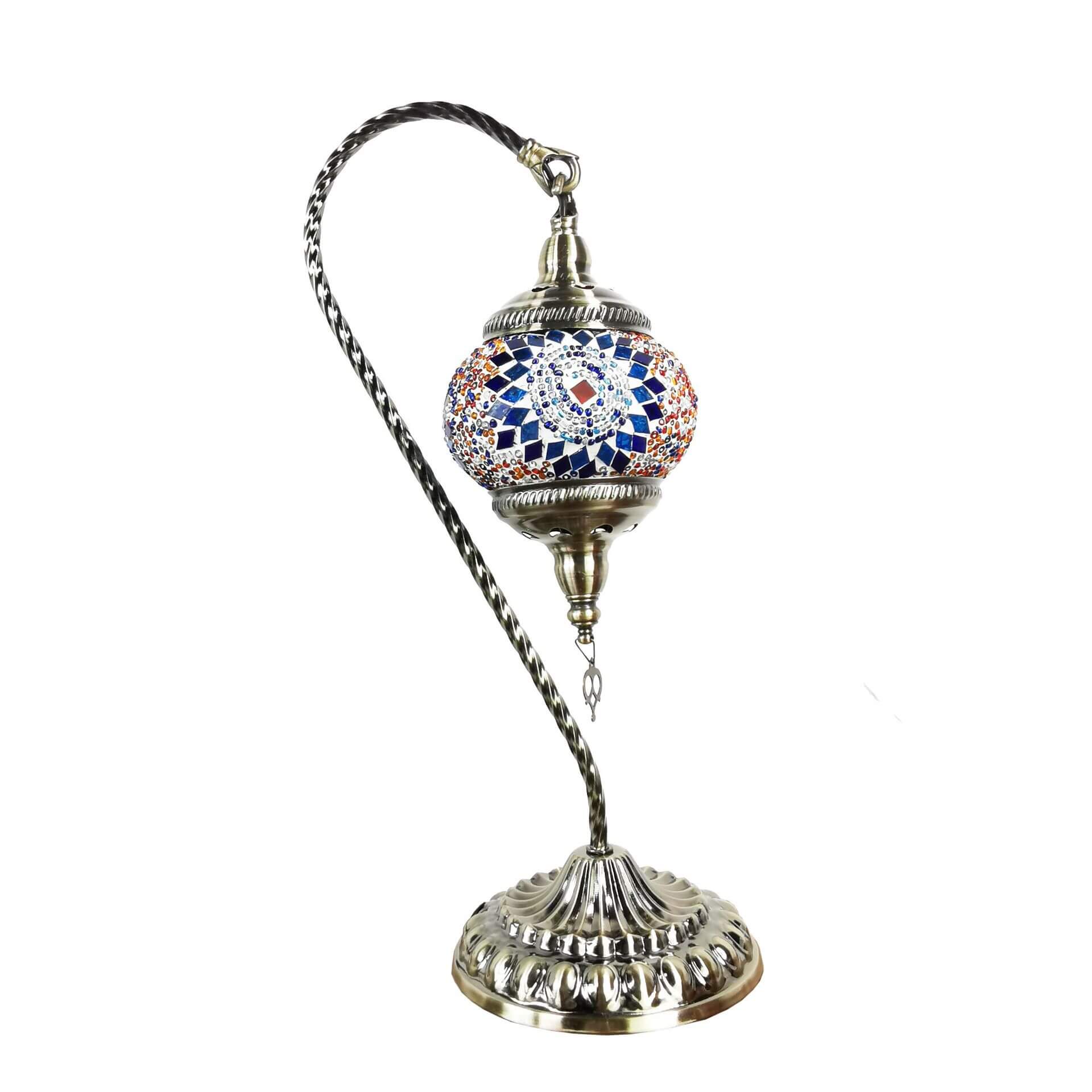 Vintage Turkish Stained Glass Swan Neck 1-Light Table Lamp