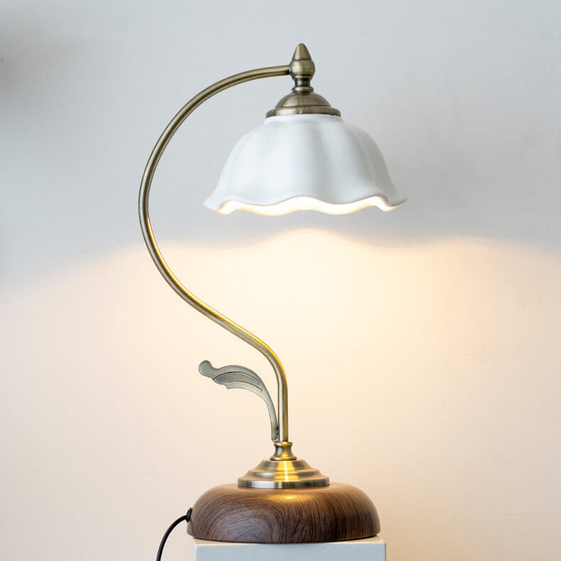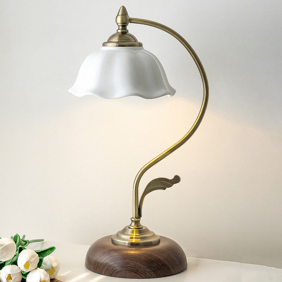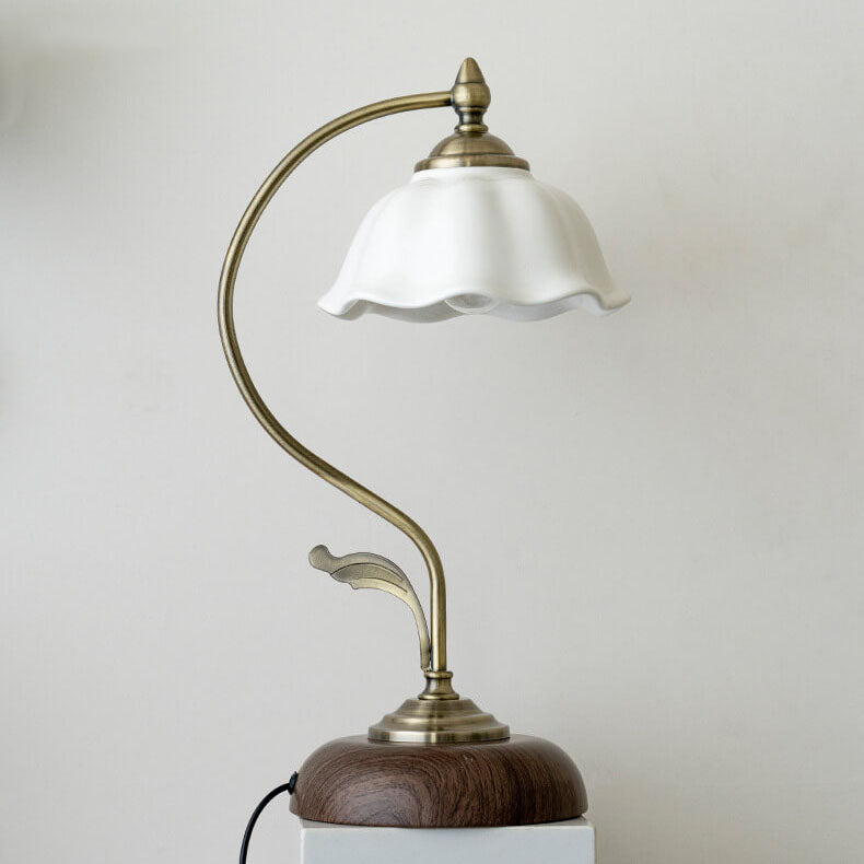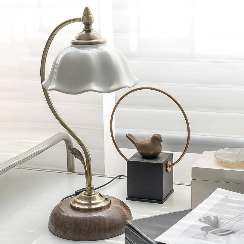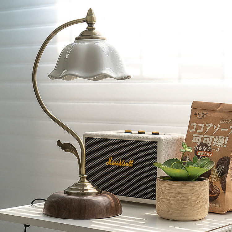 Vintage Walnut Flower Shade Ceramic 1-Light Table Lamp