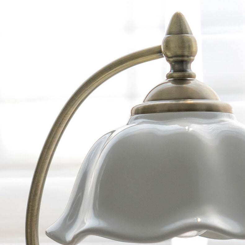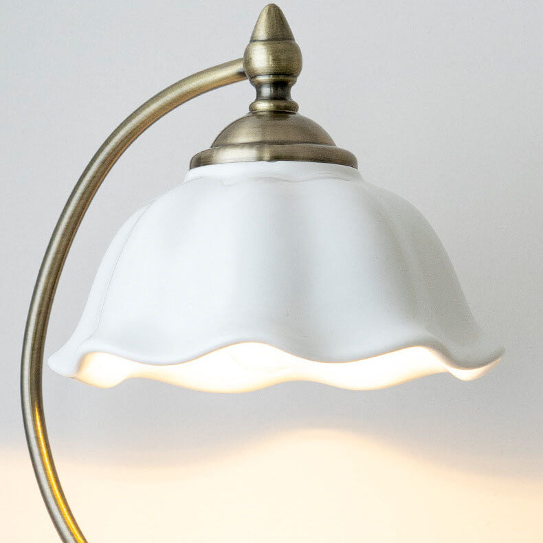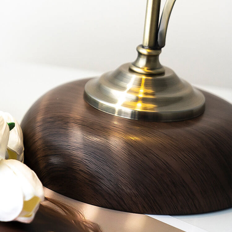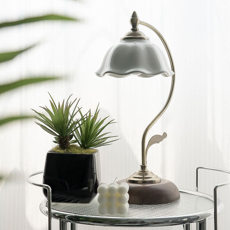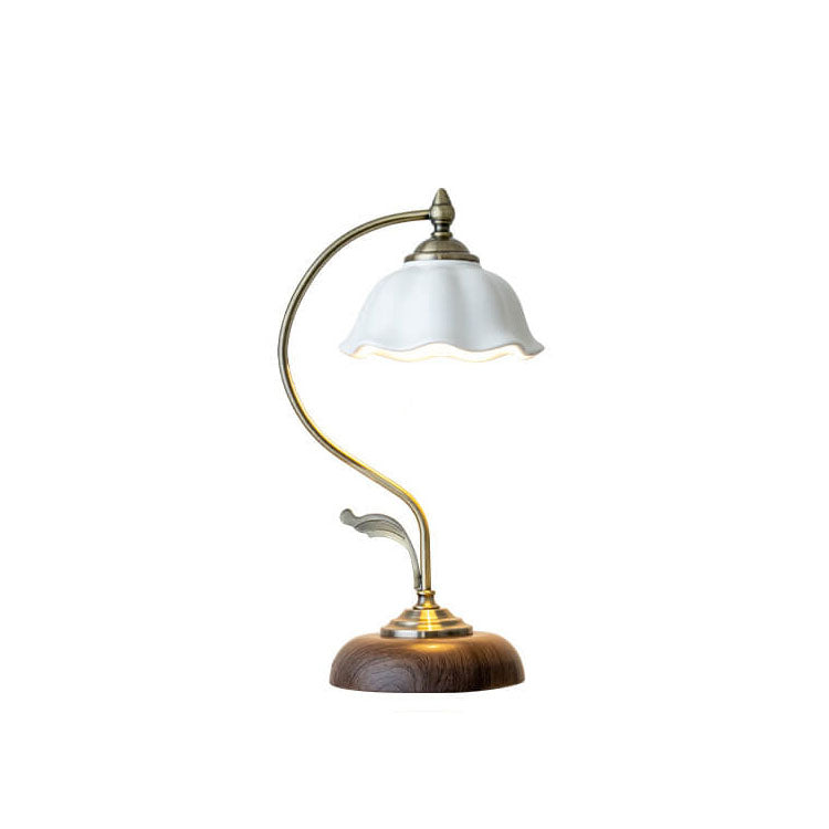 Vintage Walnut Flower Shade Ceramic 1-Light Table Lamp