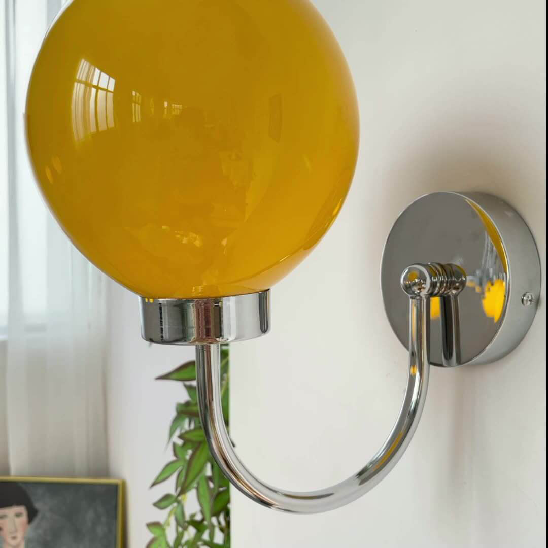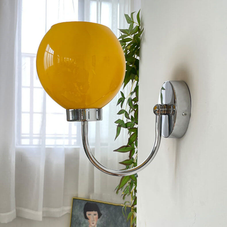 Vintage Yellow Glass Orb Shade 1-Light Wall Sconce Lamp