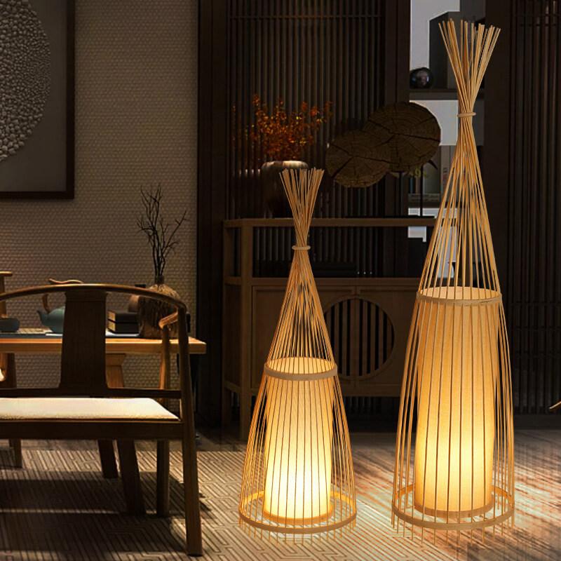Bamboo Weaving 1-Light Hut Shaped Standing Floor Lamps