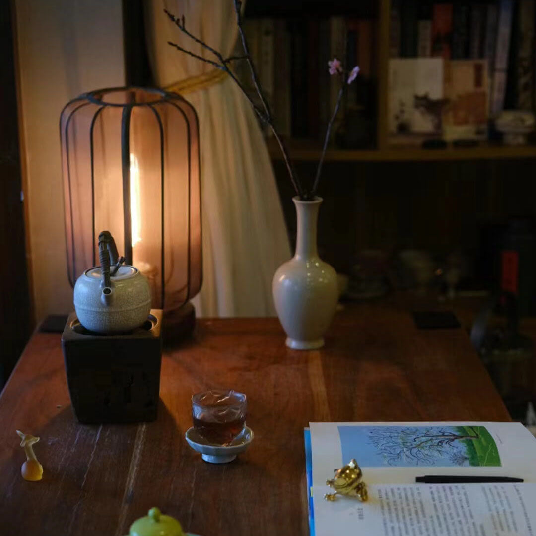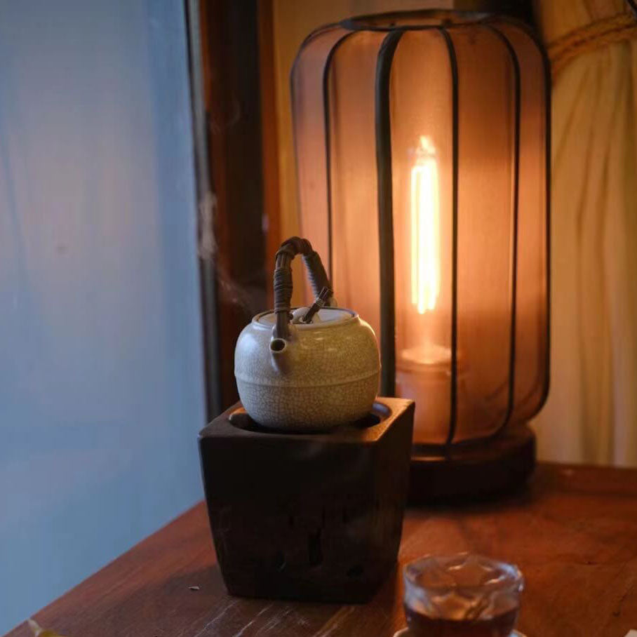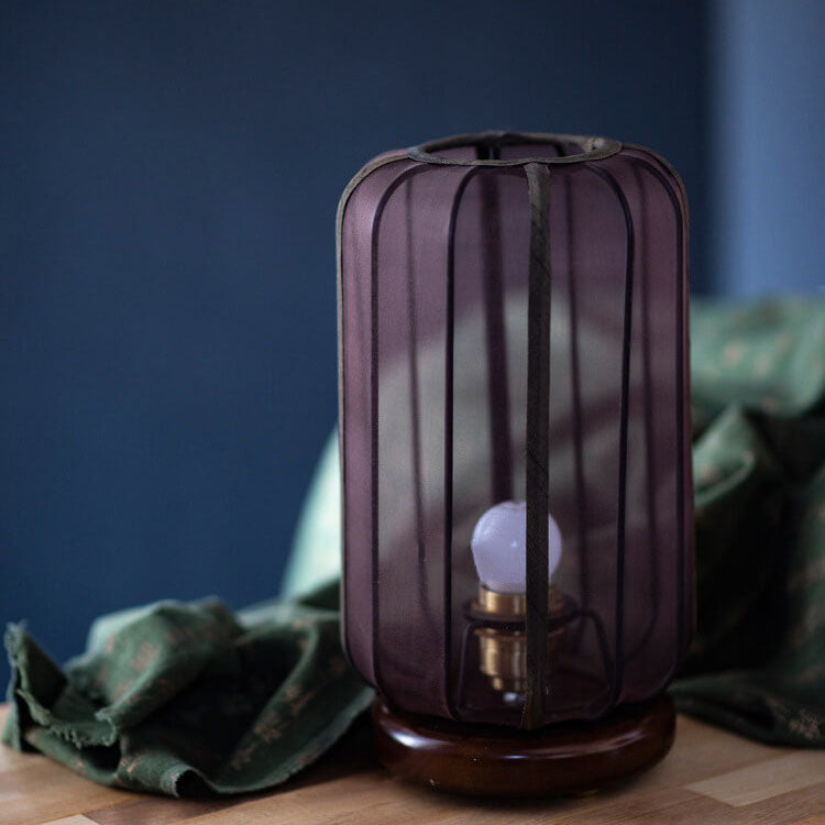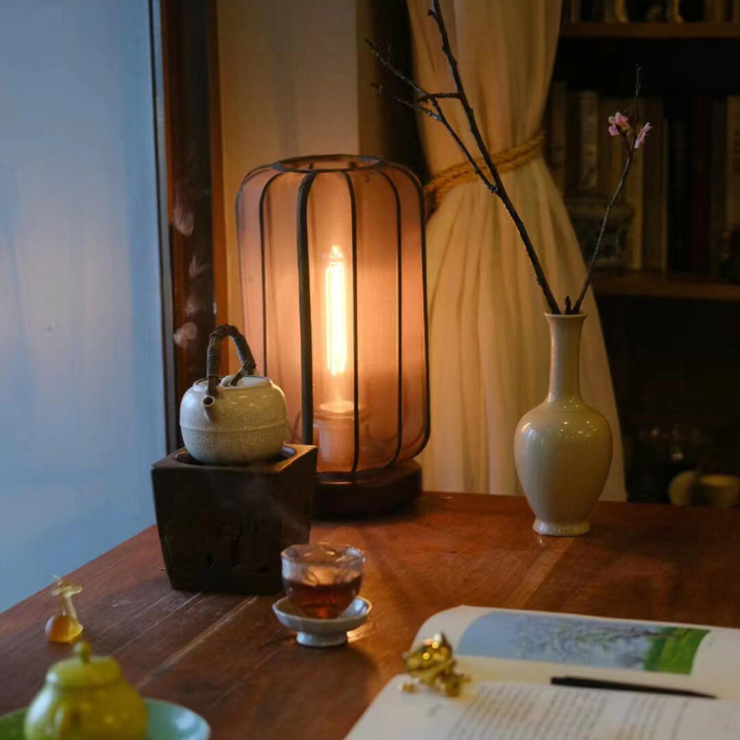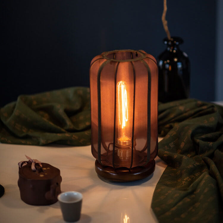 Chinese Zen Transparent Silk Lampshade Solid Wood 1-Light Table Lamp