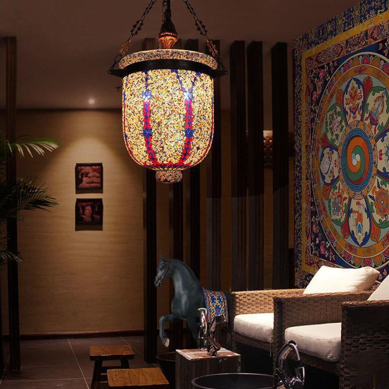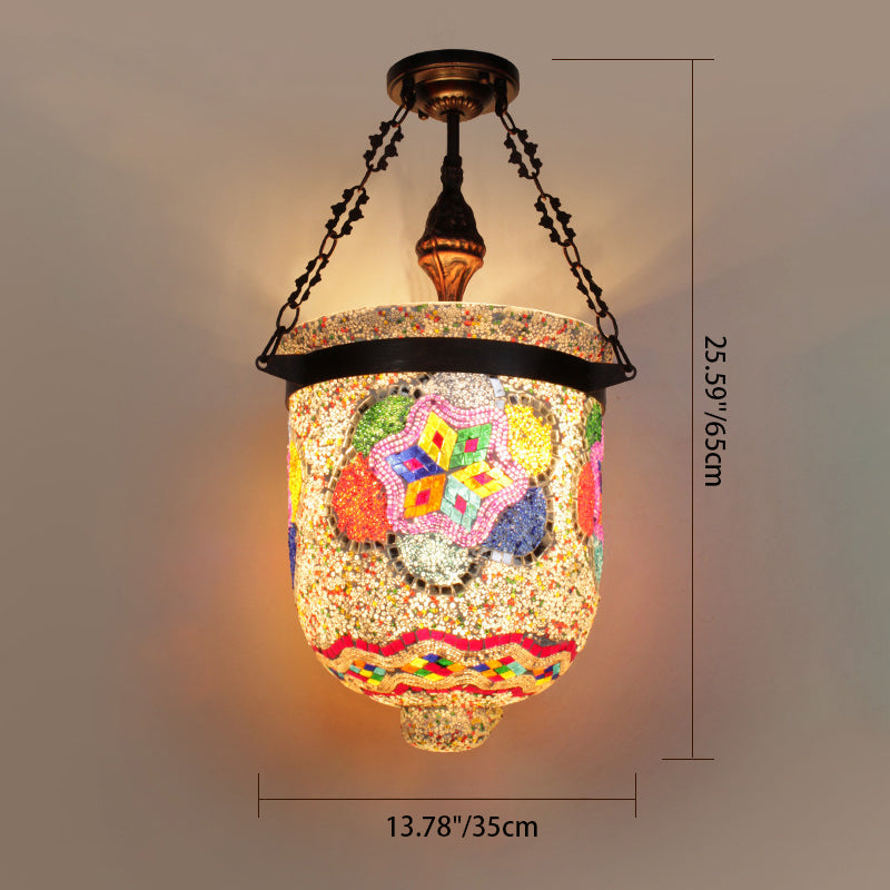 Contemporary Boho Iron Glass Decorative Cylinder Mosaic 3-Light Chandeliers For Dining Room