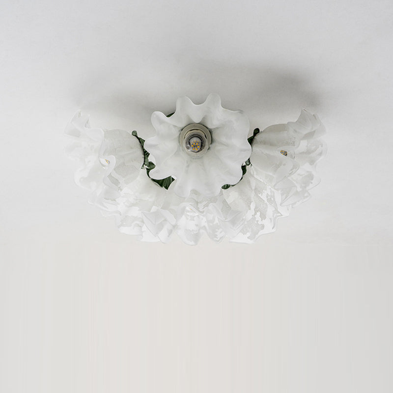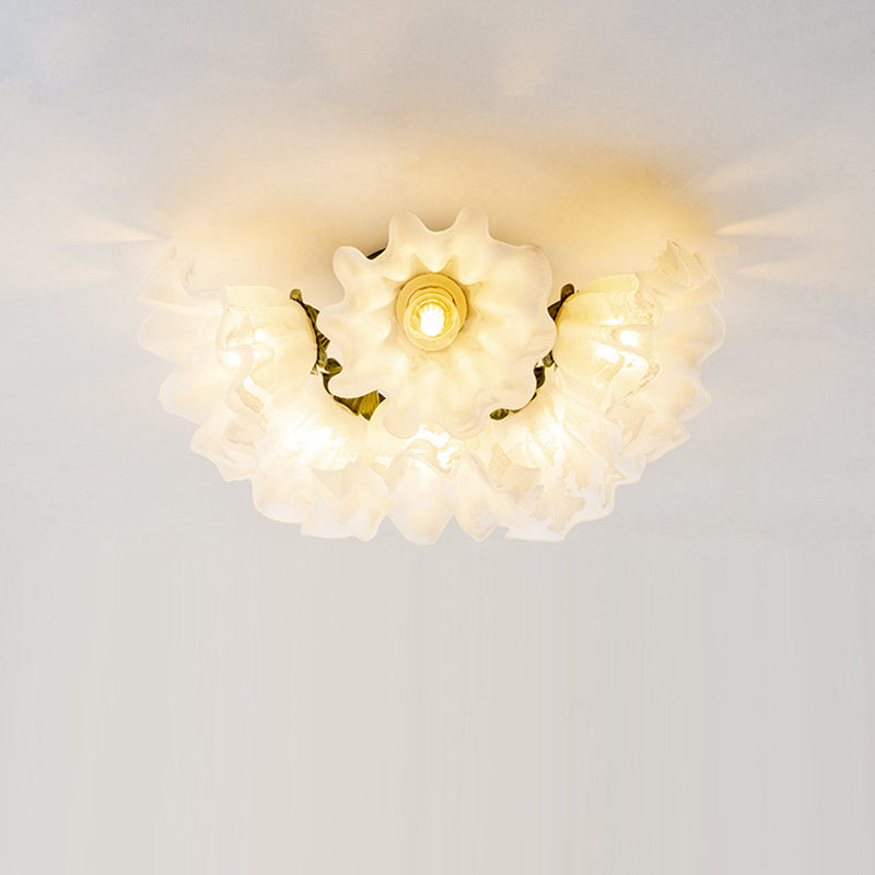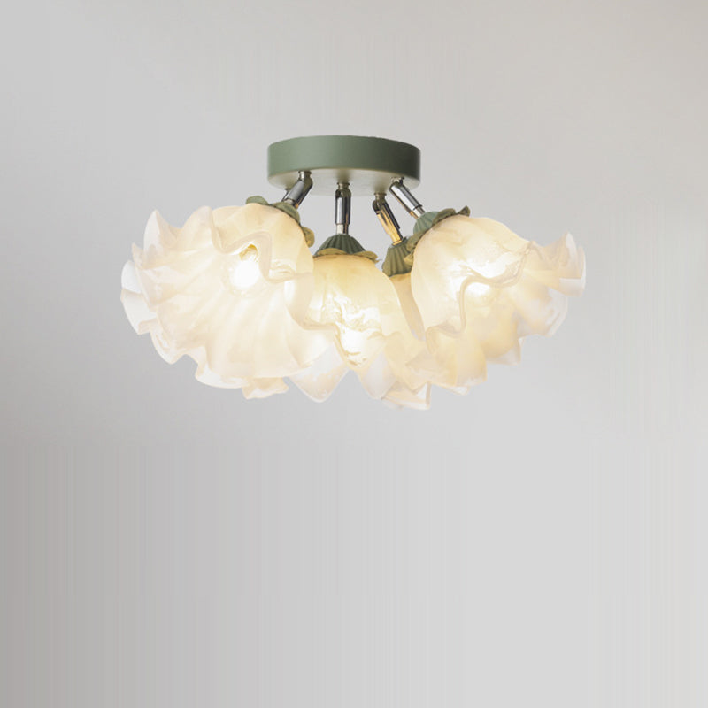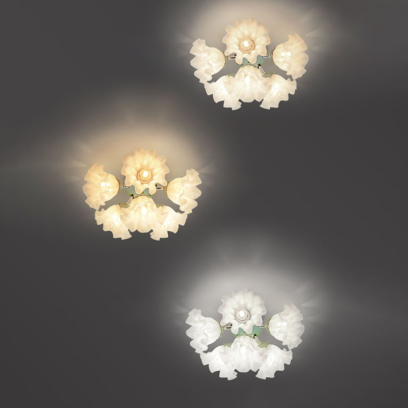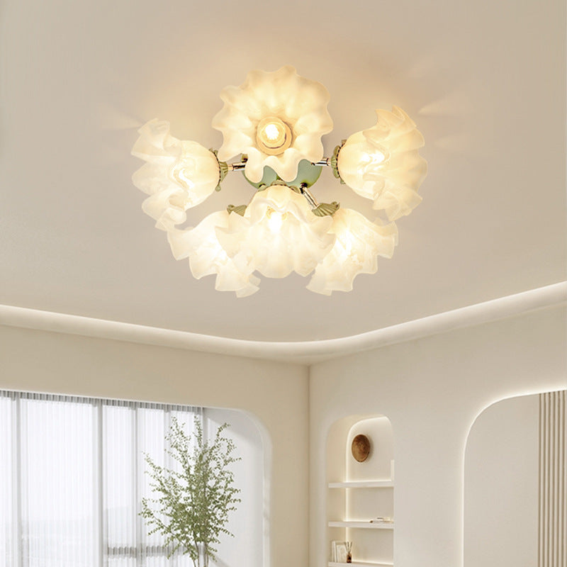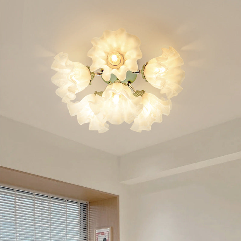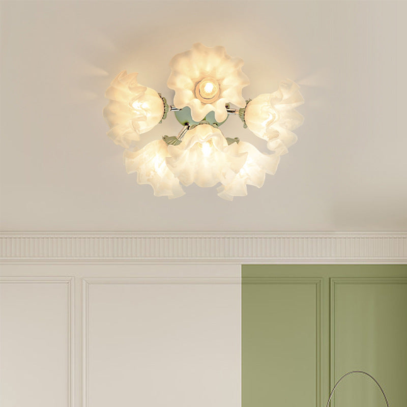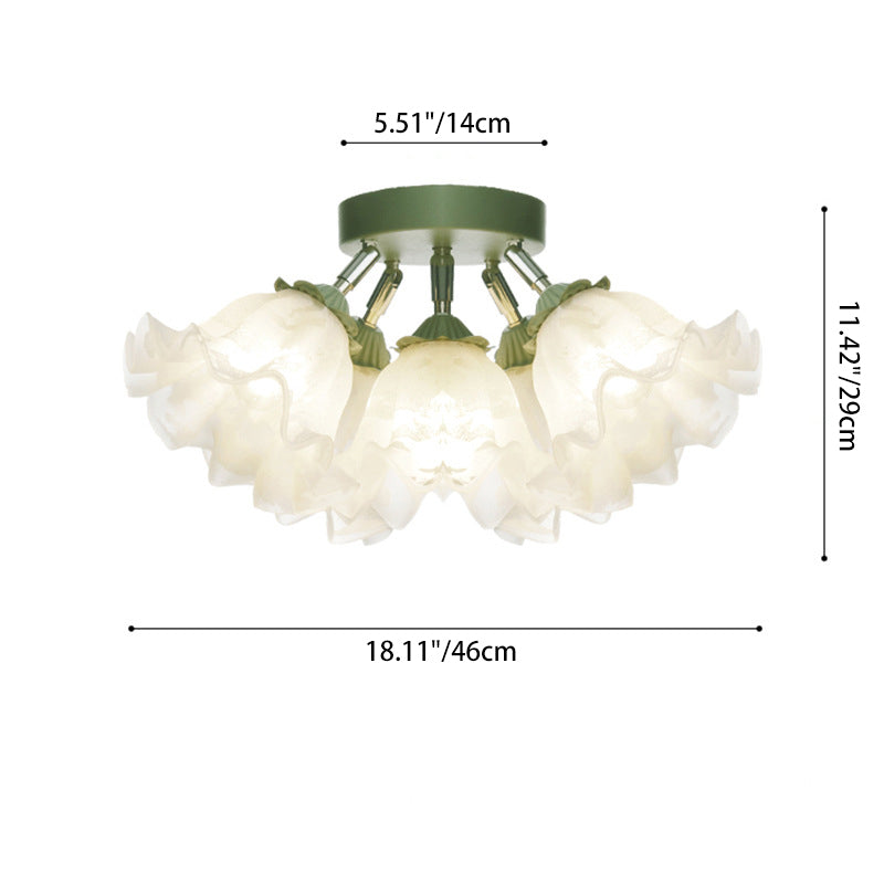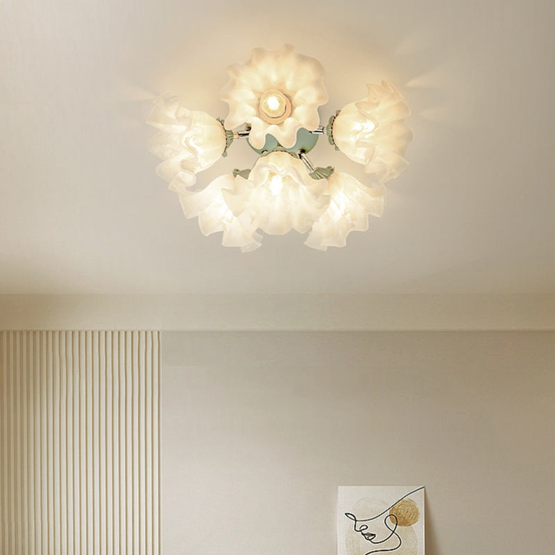 Contemporary Creative Bell Orchid Flower Iron Acrylic Shade 6-Light Semi-Flush Mount Ceiling Light For Bedroom