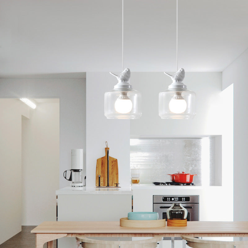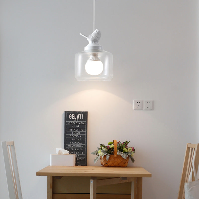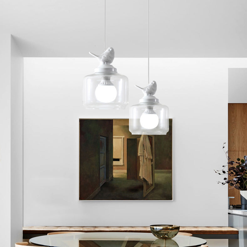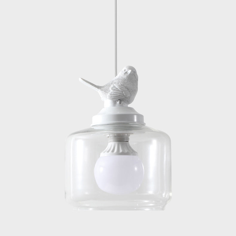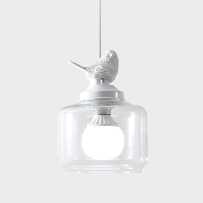 Contemporary Creative Bird Round Cylinder Resin Glass 1-Light Pendant Light For Dining Room
