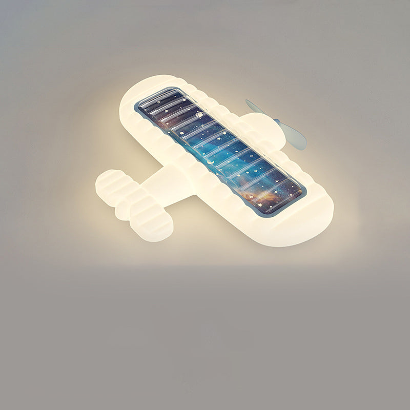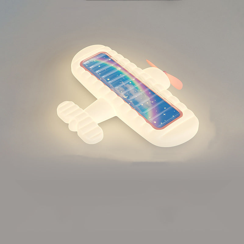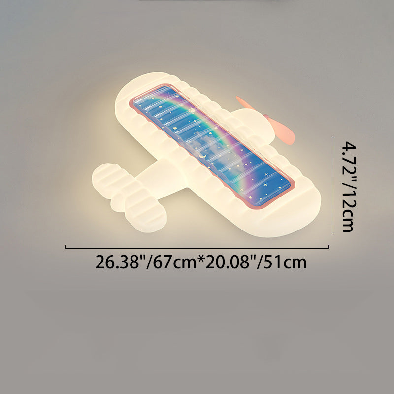 Contemporary Creative Cream Cartoon Airplane Shape Rectangle PE Iron LED Flush Mount Ceiling Light For Bedroom