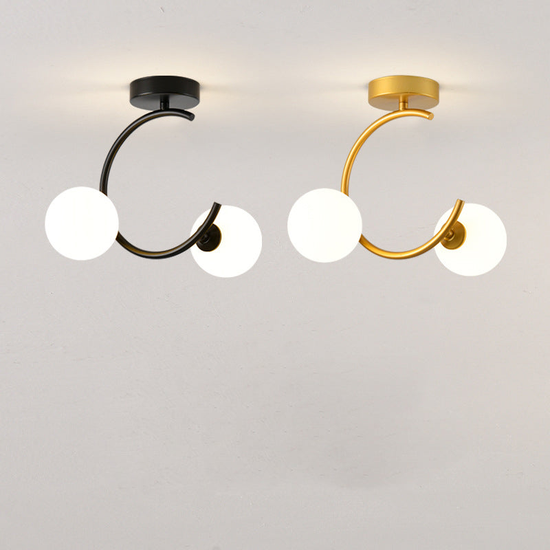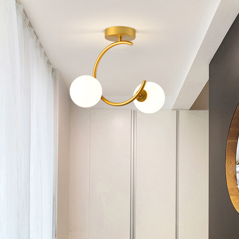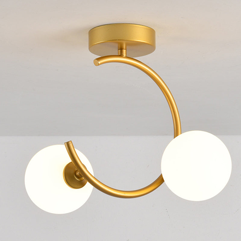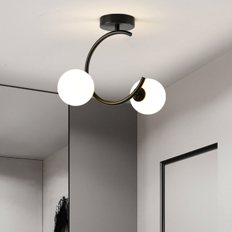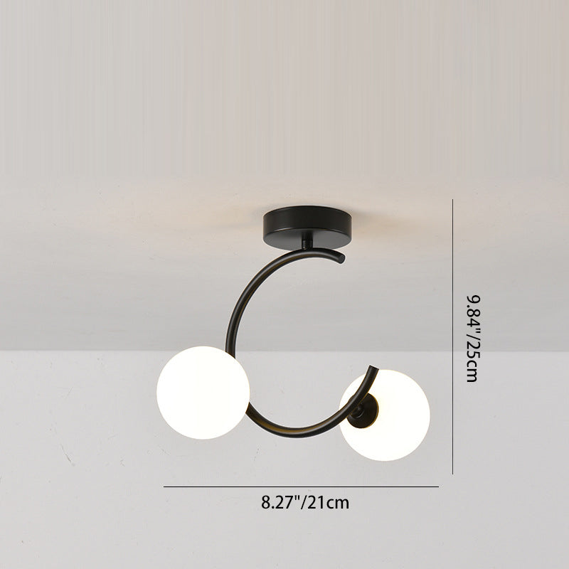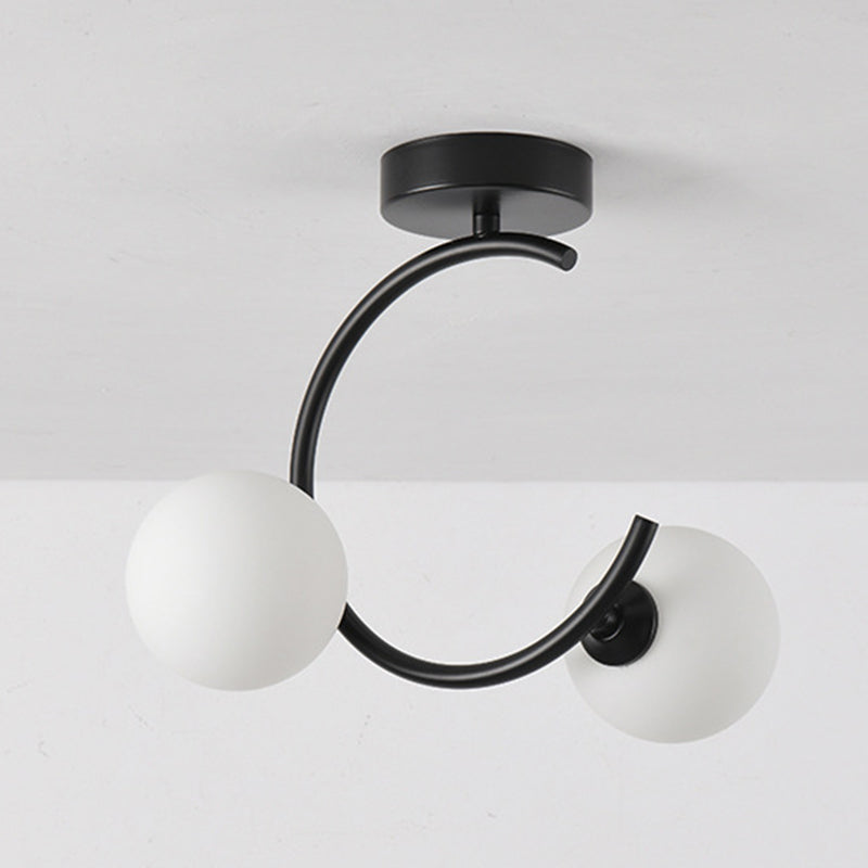 Contemporary Creative Glass Iron Curved Globe 2-Light Semi-Flush Mount Ceiling Light For Bedroom And Living Room