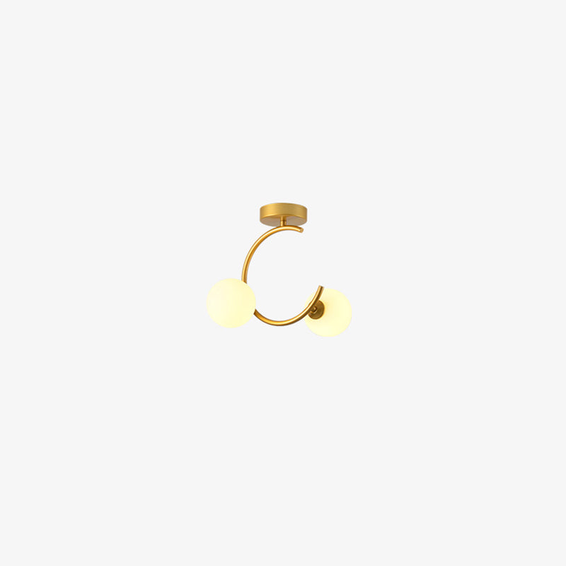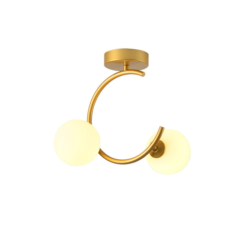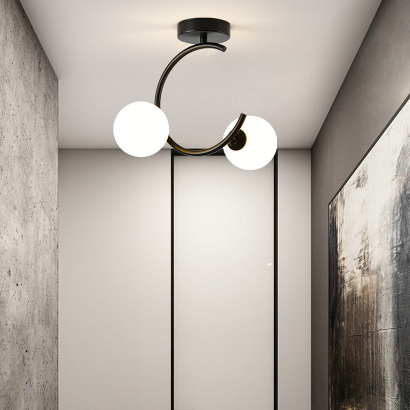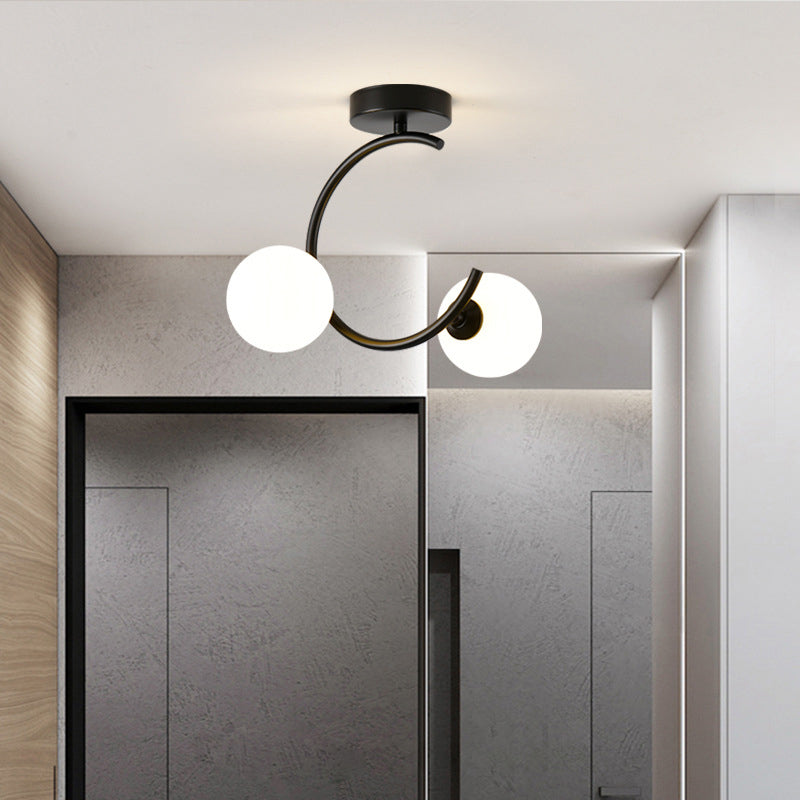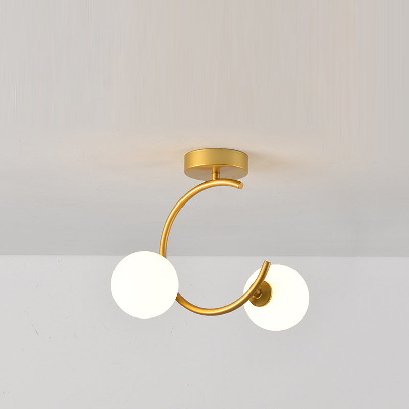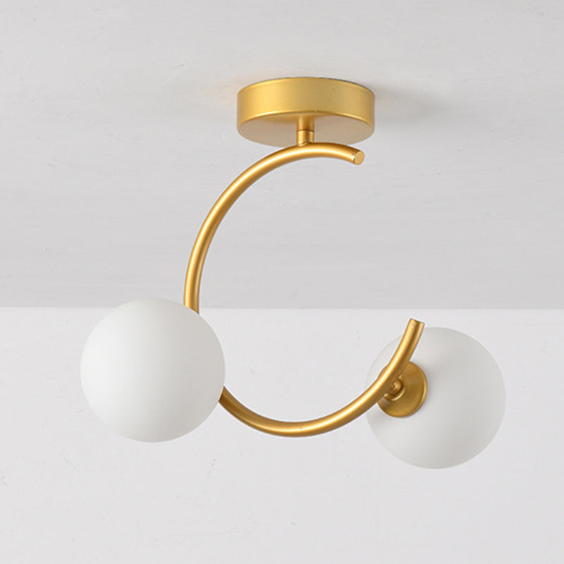 Contemporary Creative Glass Iron Curved Globe 2-Light Semi-Flush Mount Ceiling Light For Bedroom And Living Room