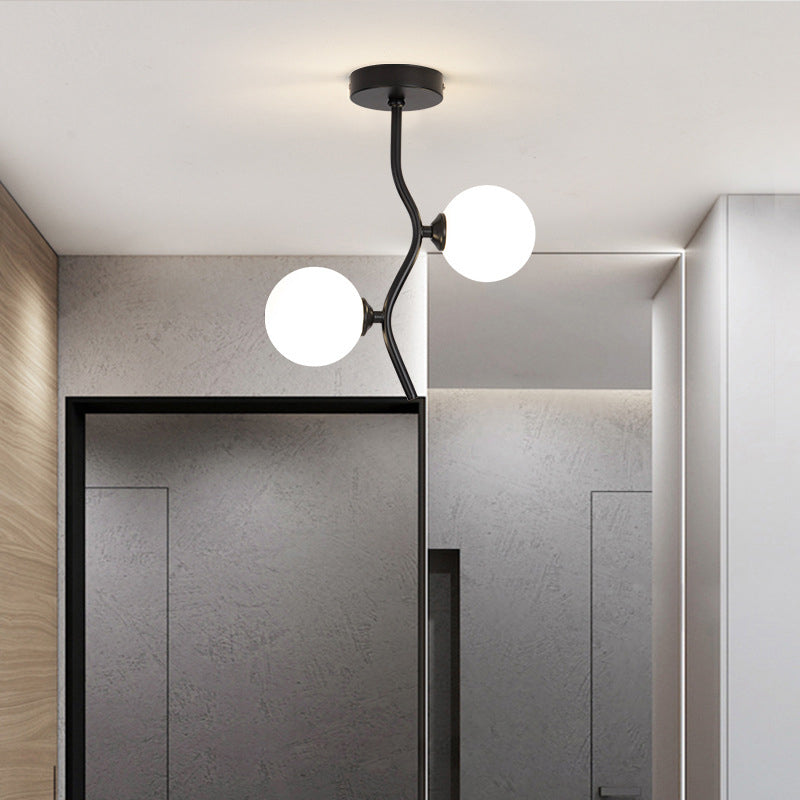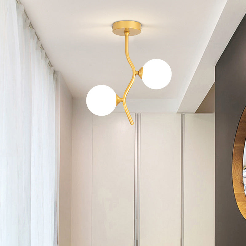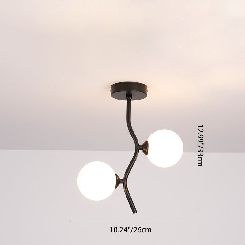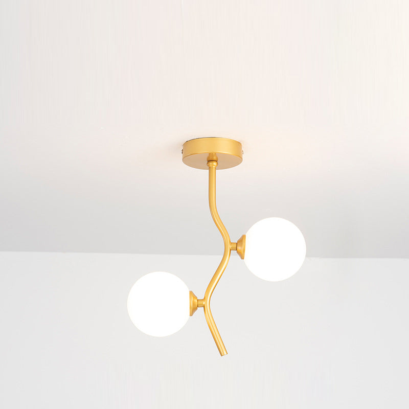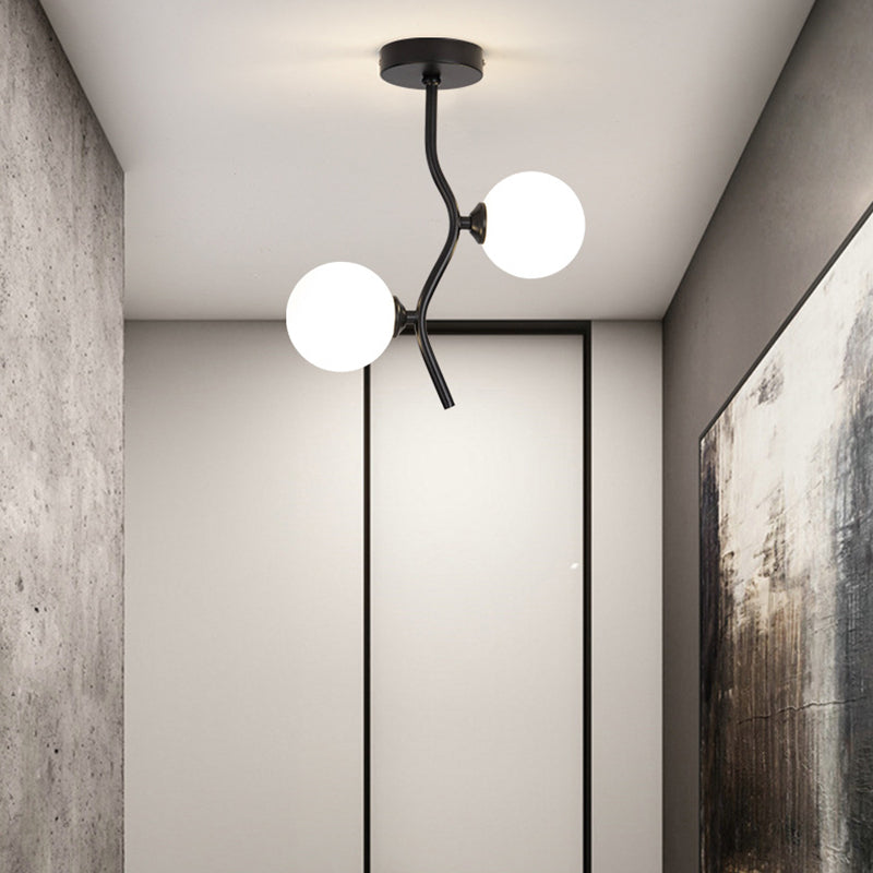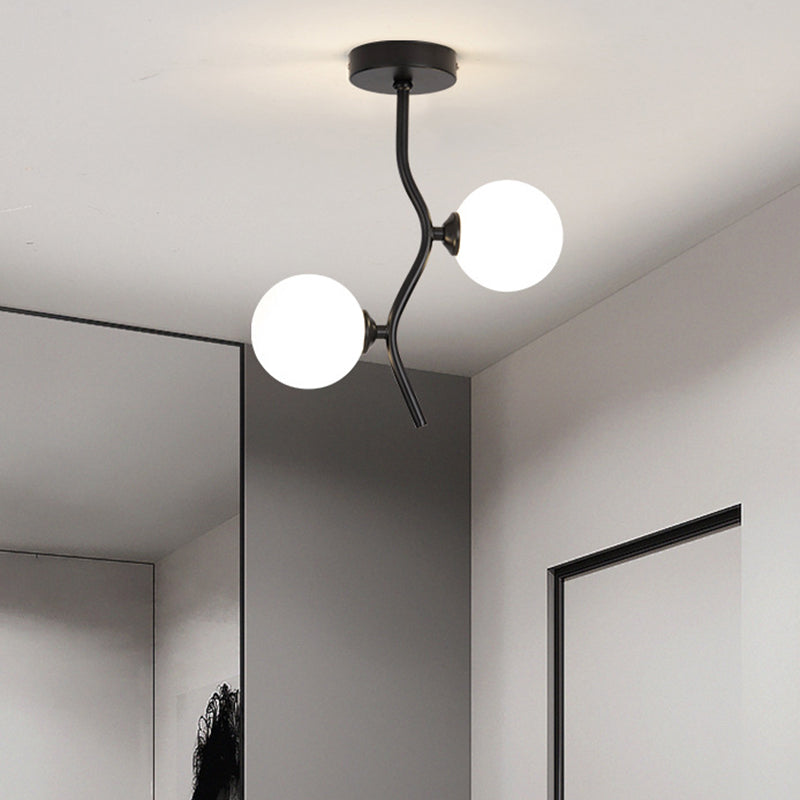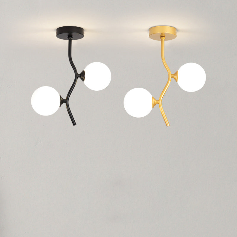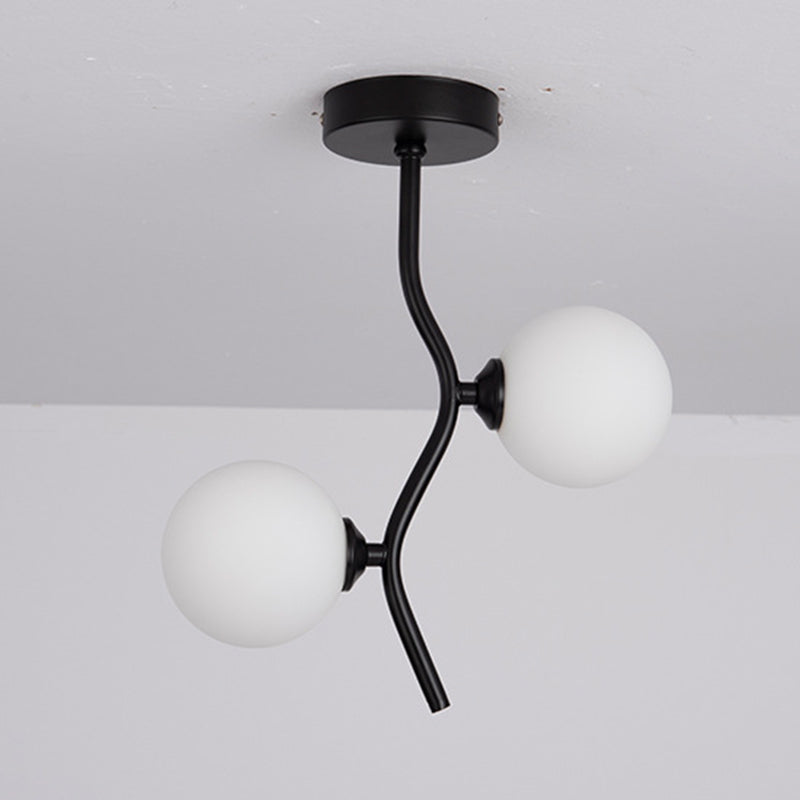 Contemporary Creative Glass Iron Wavy Globe 2-Light Semi-Flush Mount Ceiling Light For Bedroom And Living Room