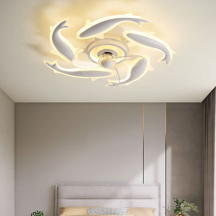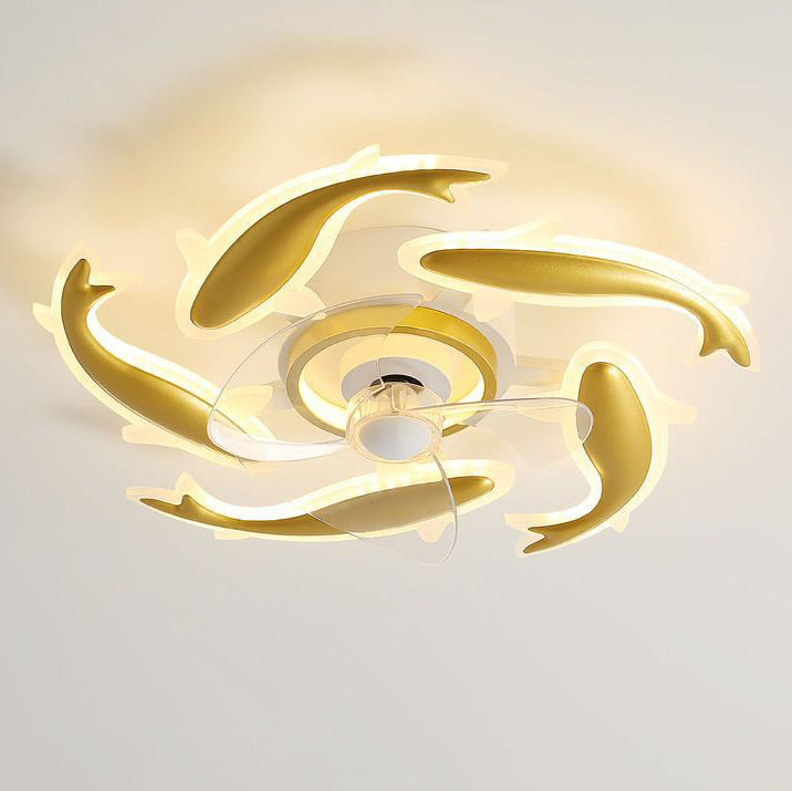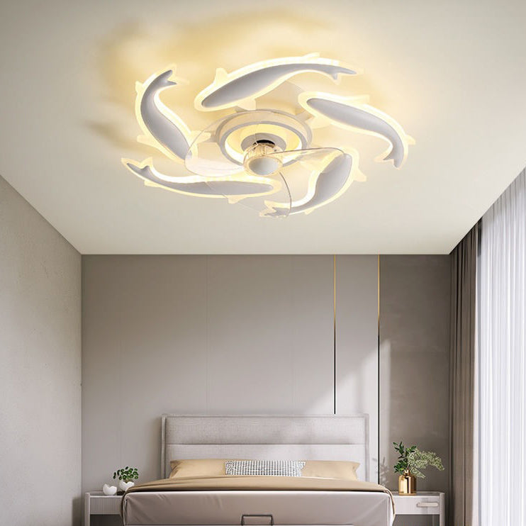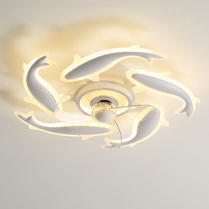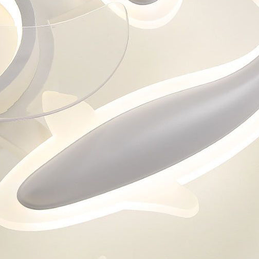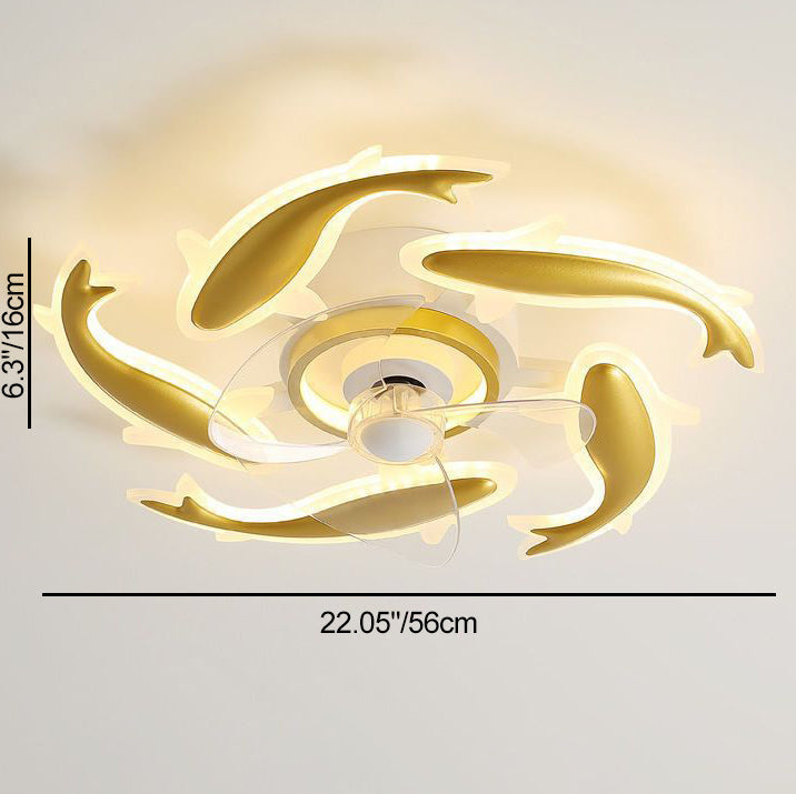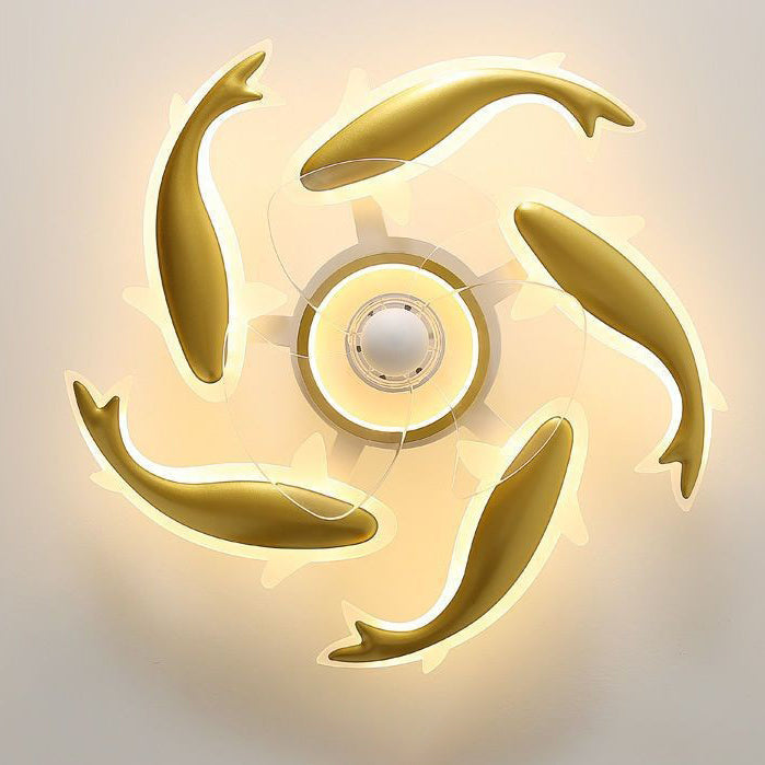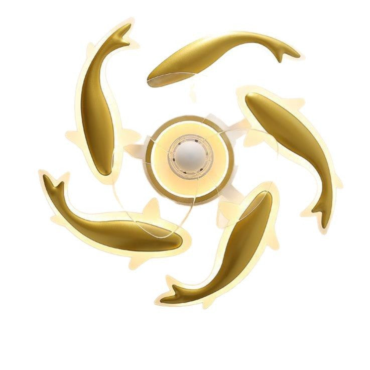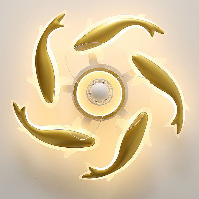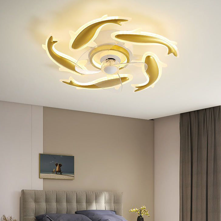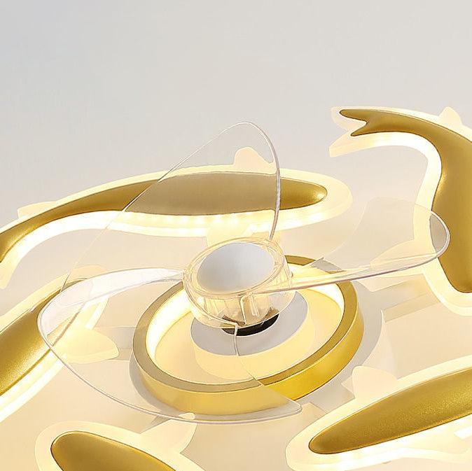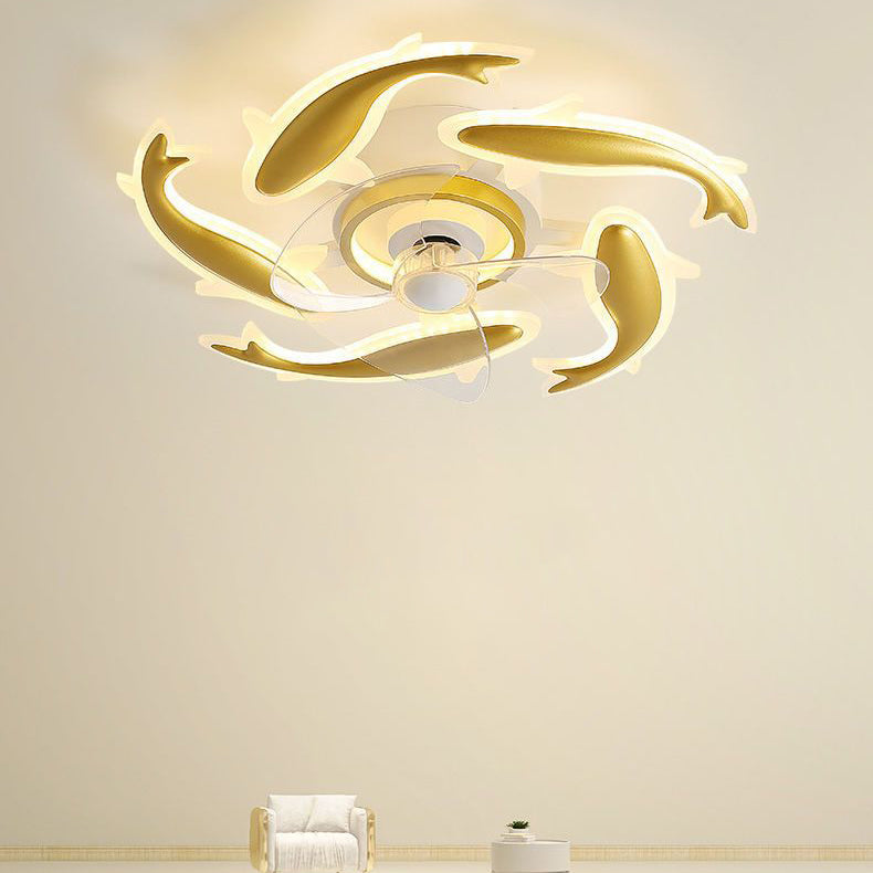 Contemporary Creative Goldfish Iron Acrylic Aluminum LED Semi-Flush Mount Ceiling Fan Light For Bedroom