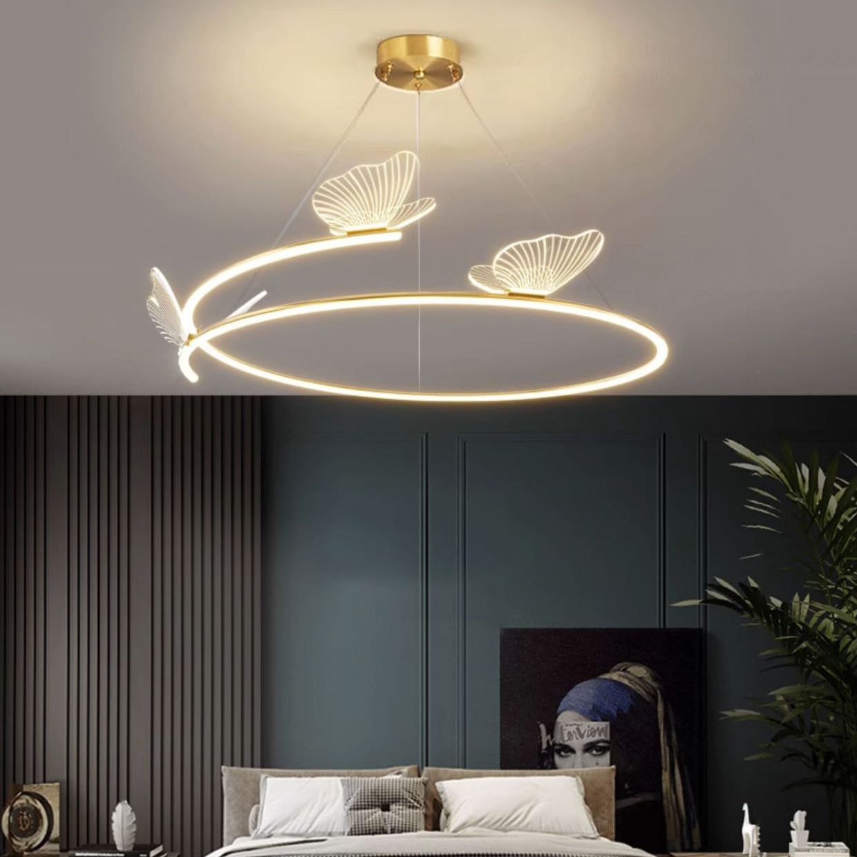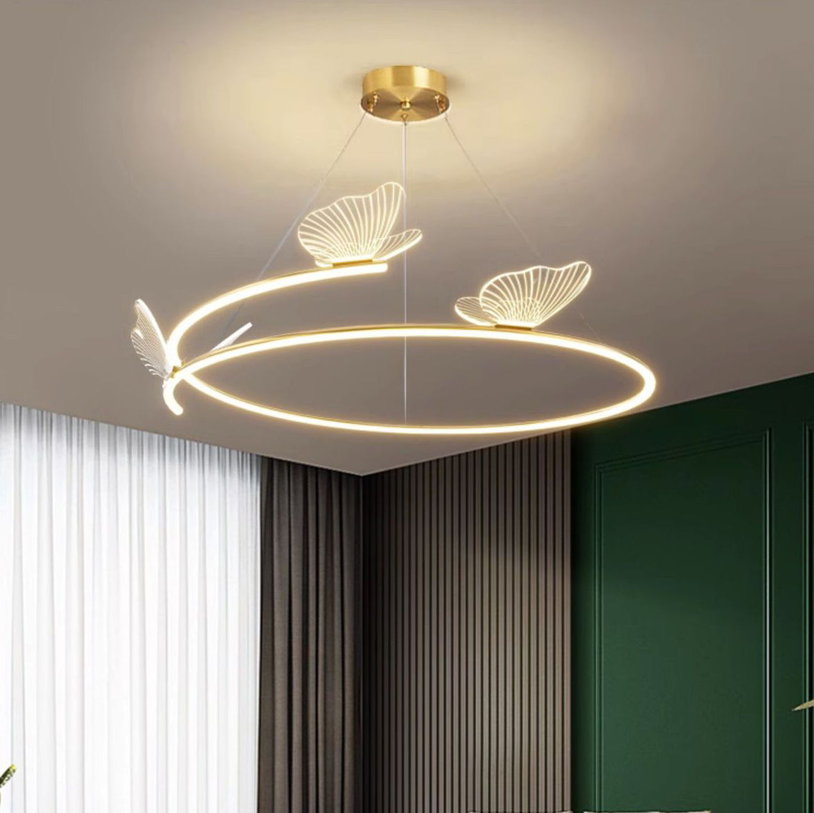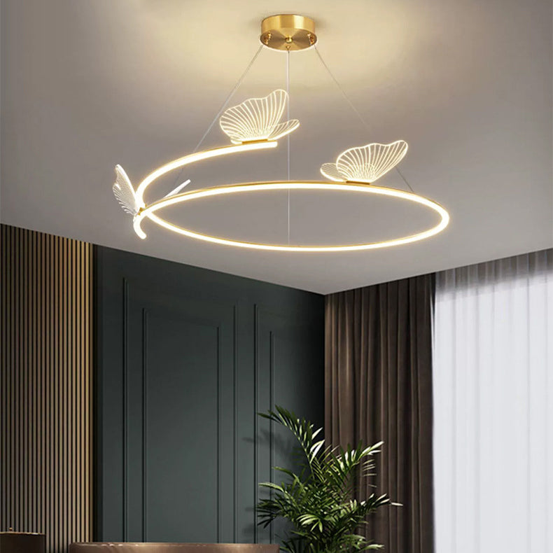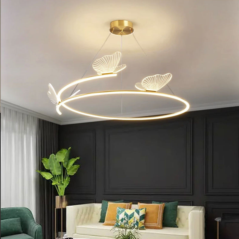 Contemporary Creative Hardware Acrylic Butterfly Circle LED Chandeliers For Living Room