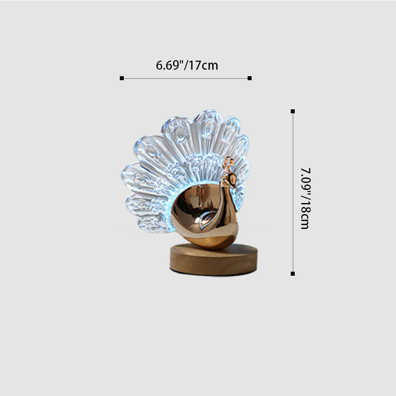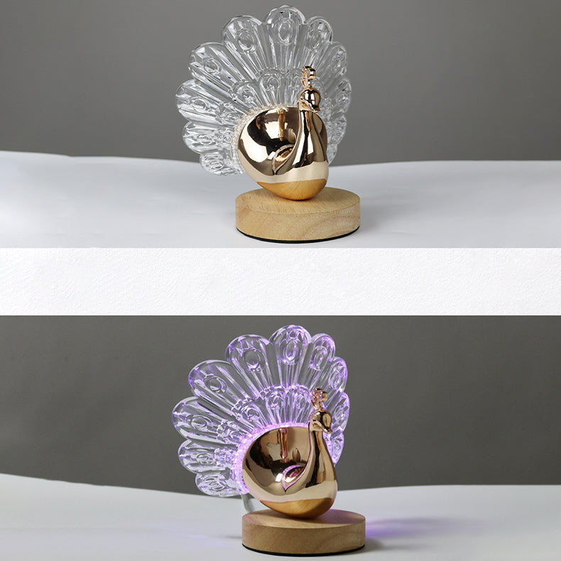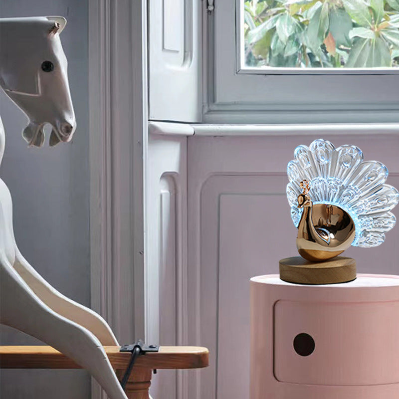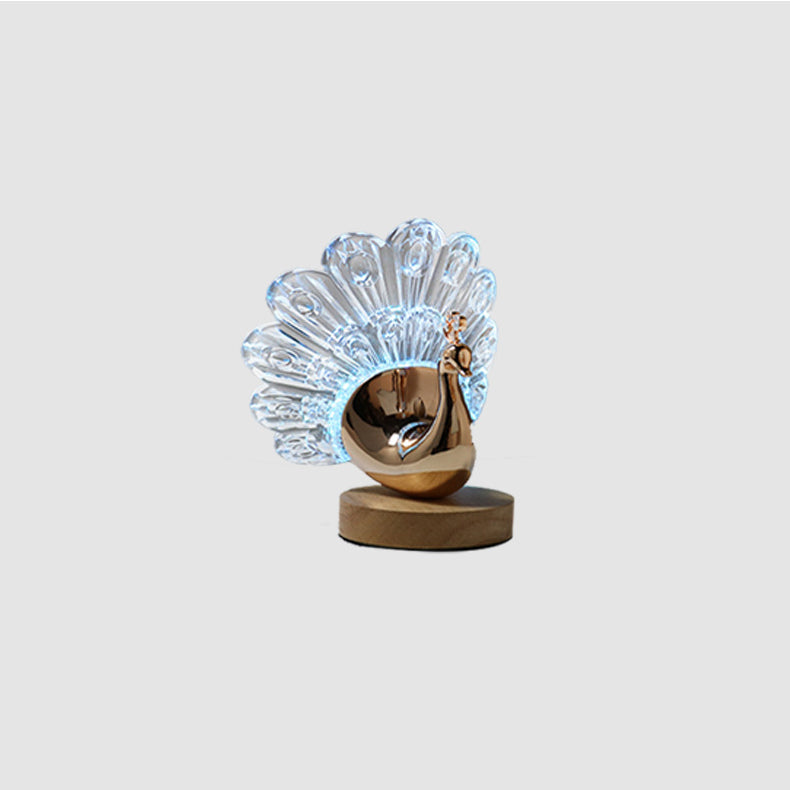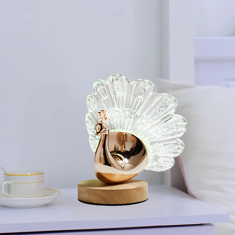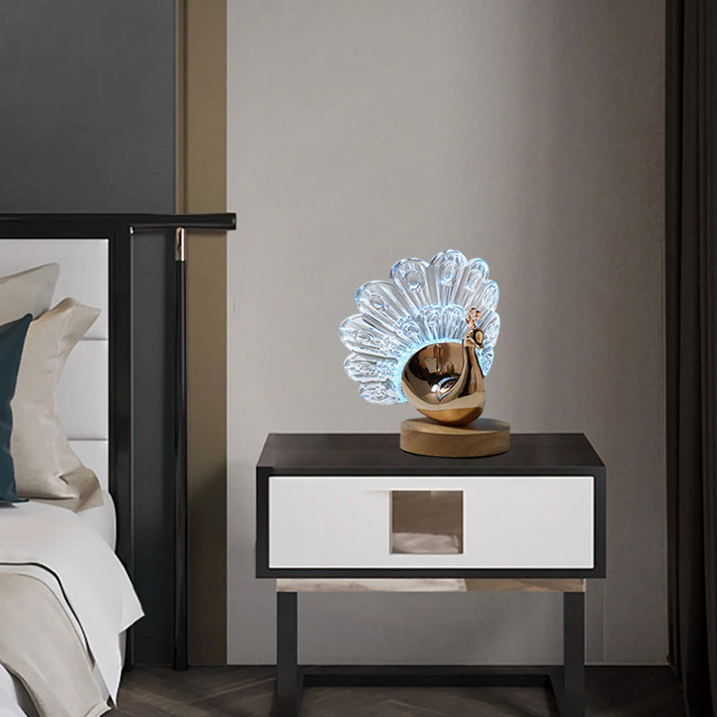 Contemporary Creative Hardware Acrylic Peacock Design LED Table Lamp For Bedroom