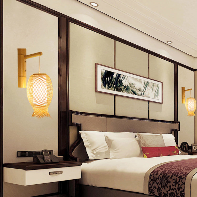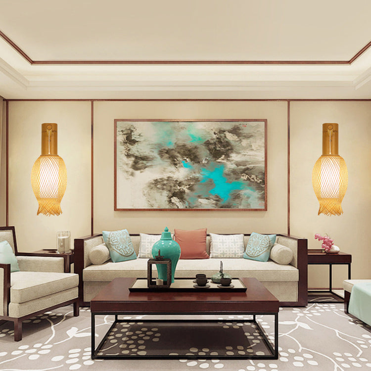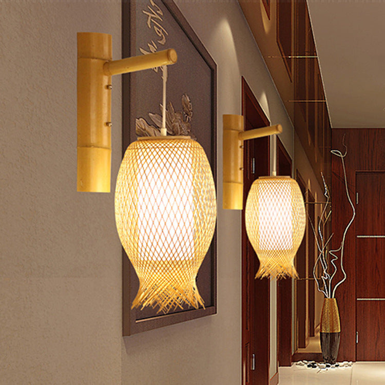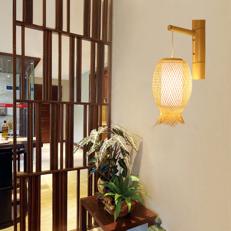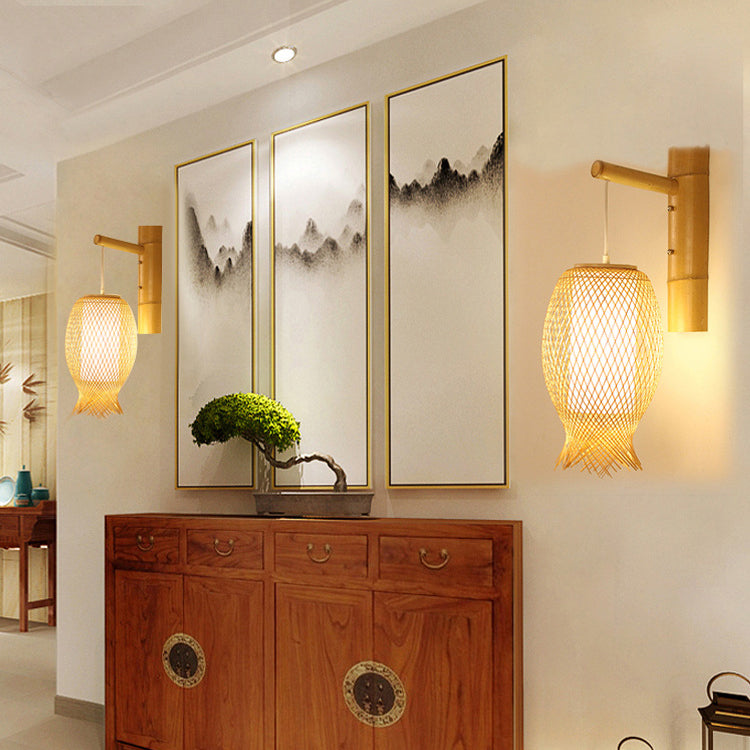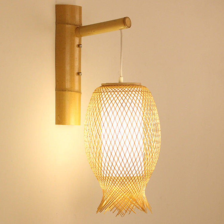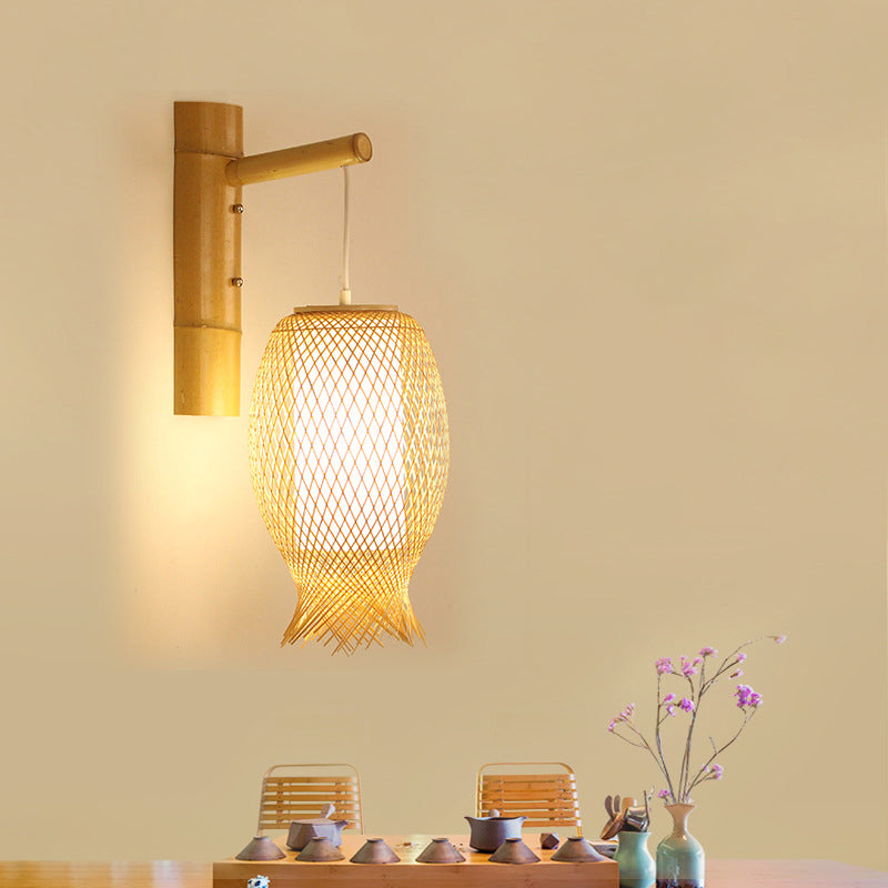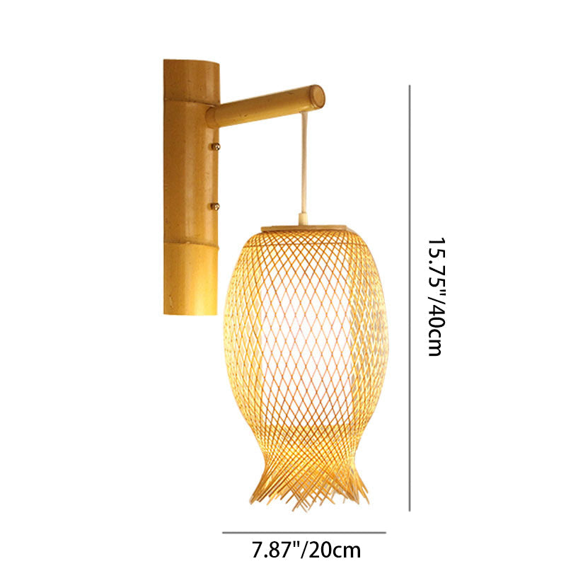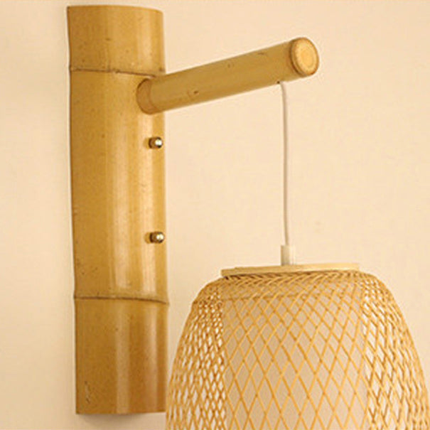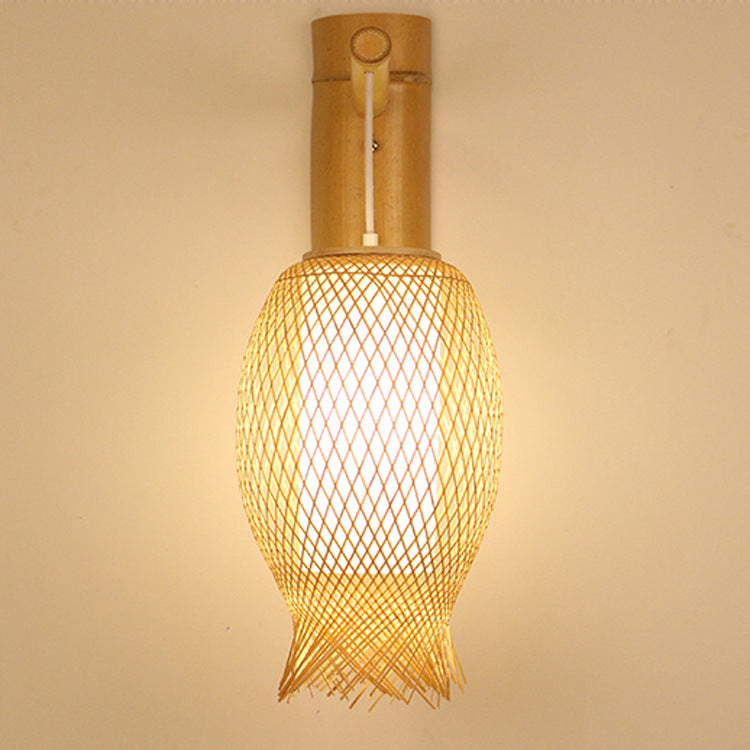 Contemporary Creative Jellyfish Oval Bamboo 1-Light Wall Sconce Lamp For Hallway