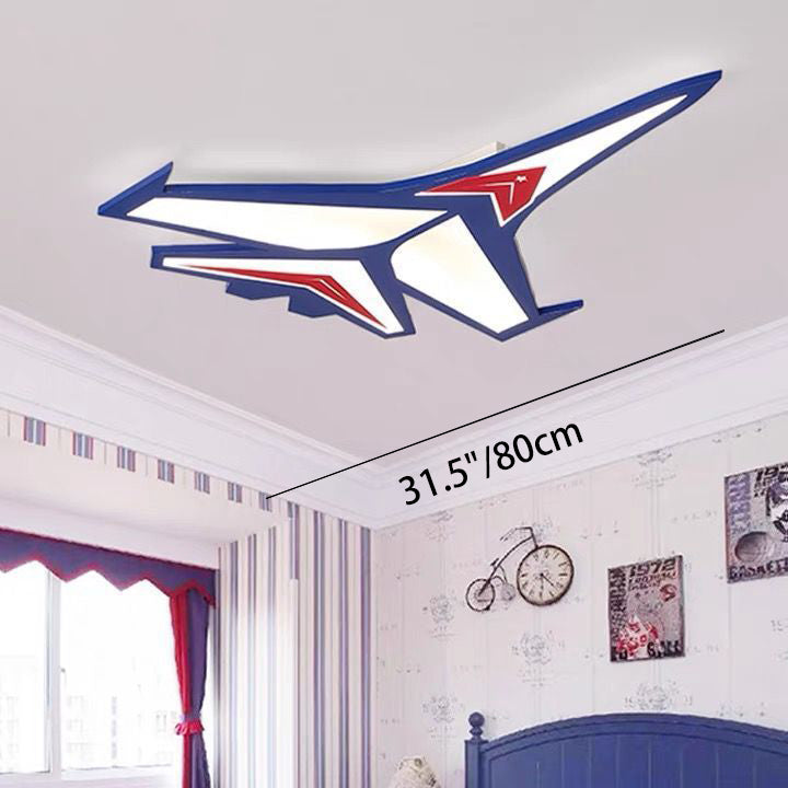 Contemporary Creative Kids Cartoon Airplane Iron LED Flush Mount Ceiling Light For Bedroom